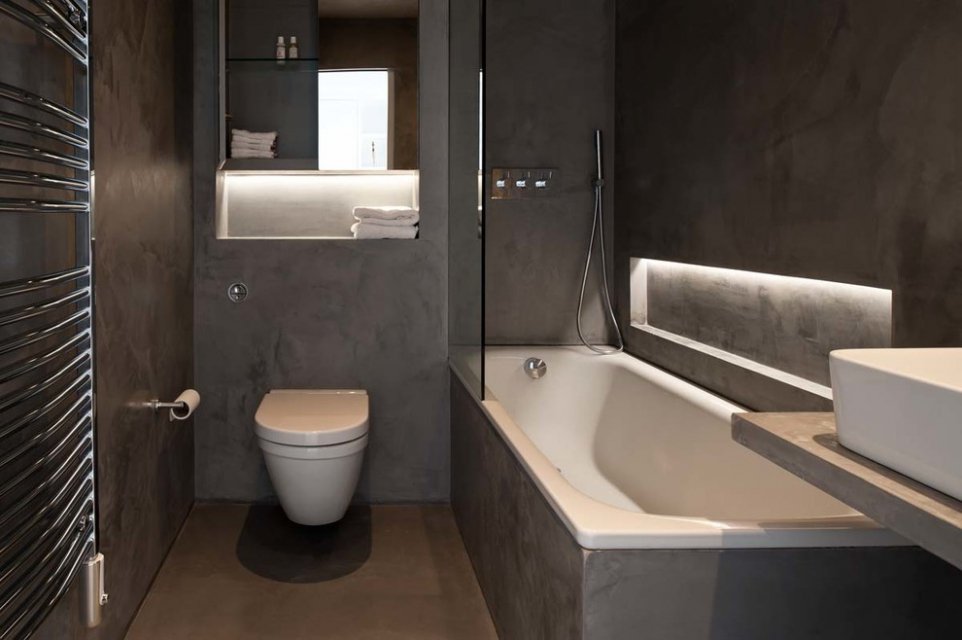 Incluso una cabina de ducha o un tanque de agua en un nicho parecen más armoniosos.