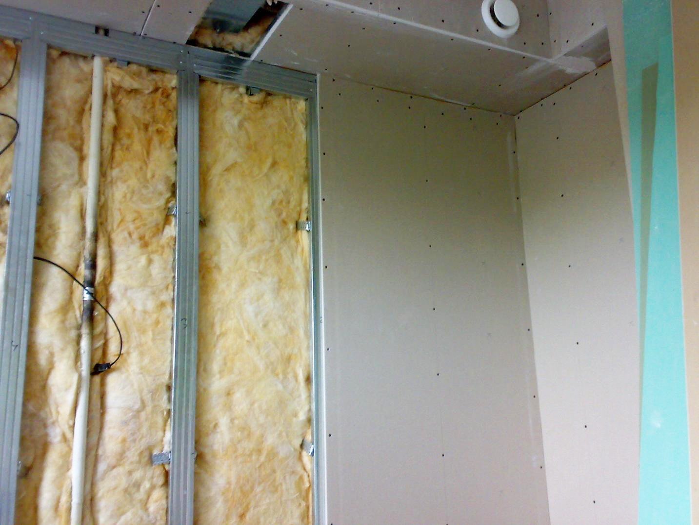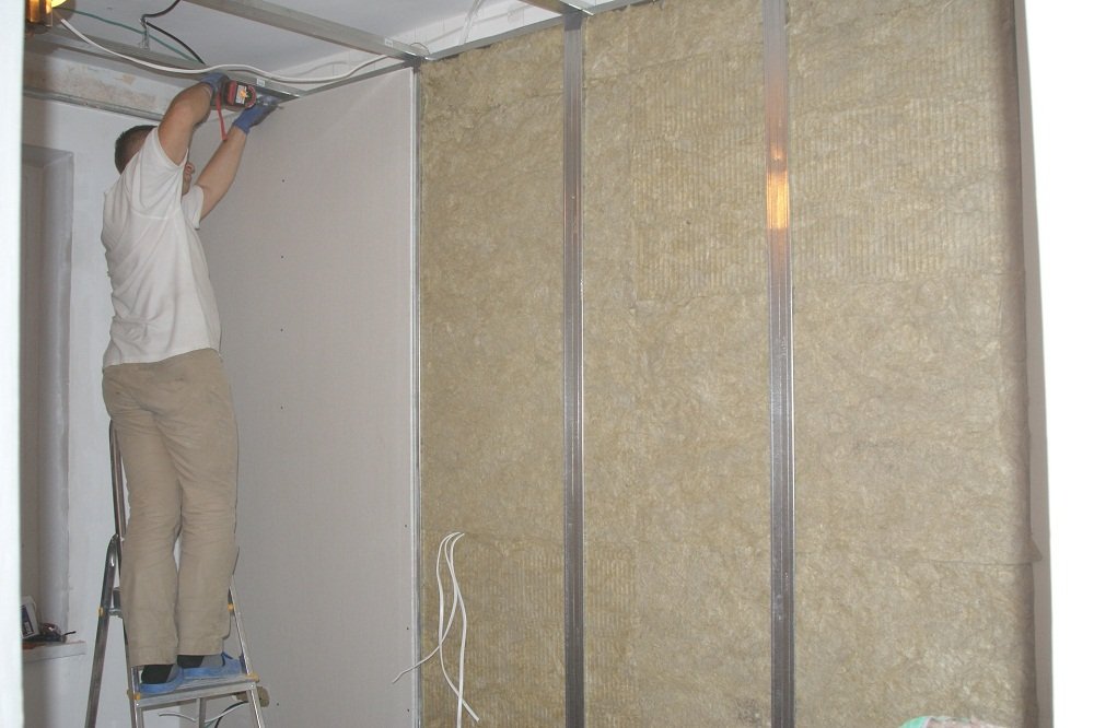 Tal banda estrecha inicialmente será el punto débil de la estructura y la probabilidad de que se pierda con el tiempo será bastante alta. Después de preparar las hojas, se sujetan al marco. Si es necesario, antes de instalar la placa de yeso-yeso, es necesario colocar entre los elementos individuales del marco de aislamiento acústico (para esta tarea, las placas especiales son ideales). Durante la instalación de paneles de yeso, debe recordar la posible necesidad de recortar las hojas horizontalmente (con techo o piso desiguales). También intente insertar tornillos autorroscantes en el panel de yeso para que no sobresalgan, pero tampoco formen "agujeros" profundos en las hojas.