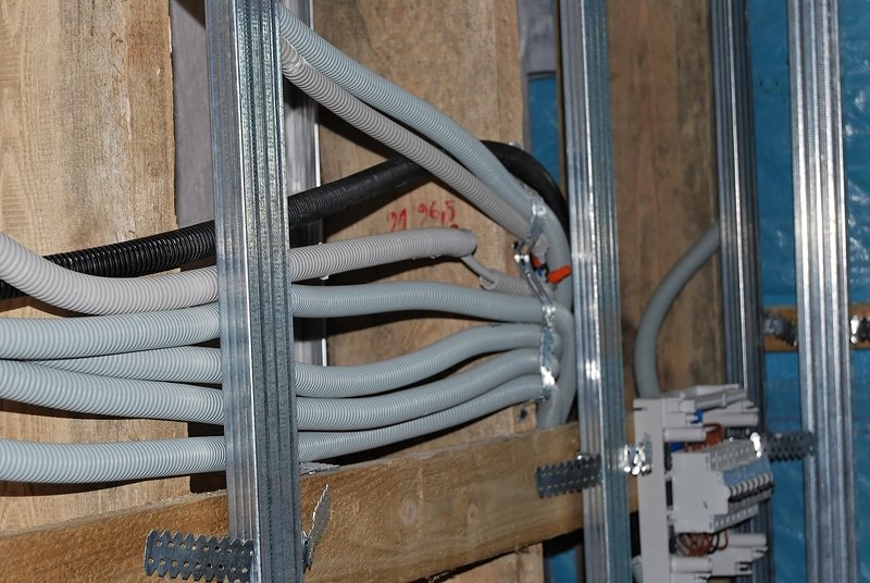 Colocando el cableado de tal manera que tenga un "suministro" de cables y que no se estire. También recomendamos que dibuje un diagrama de cableado para que en el futuro, si es necesario, tenga fácil acceso a los cables y no desmonte la pared completa por completo.