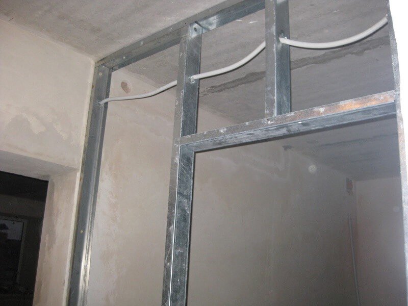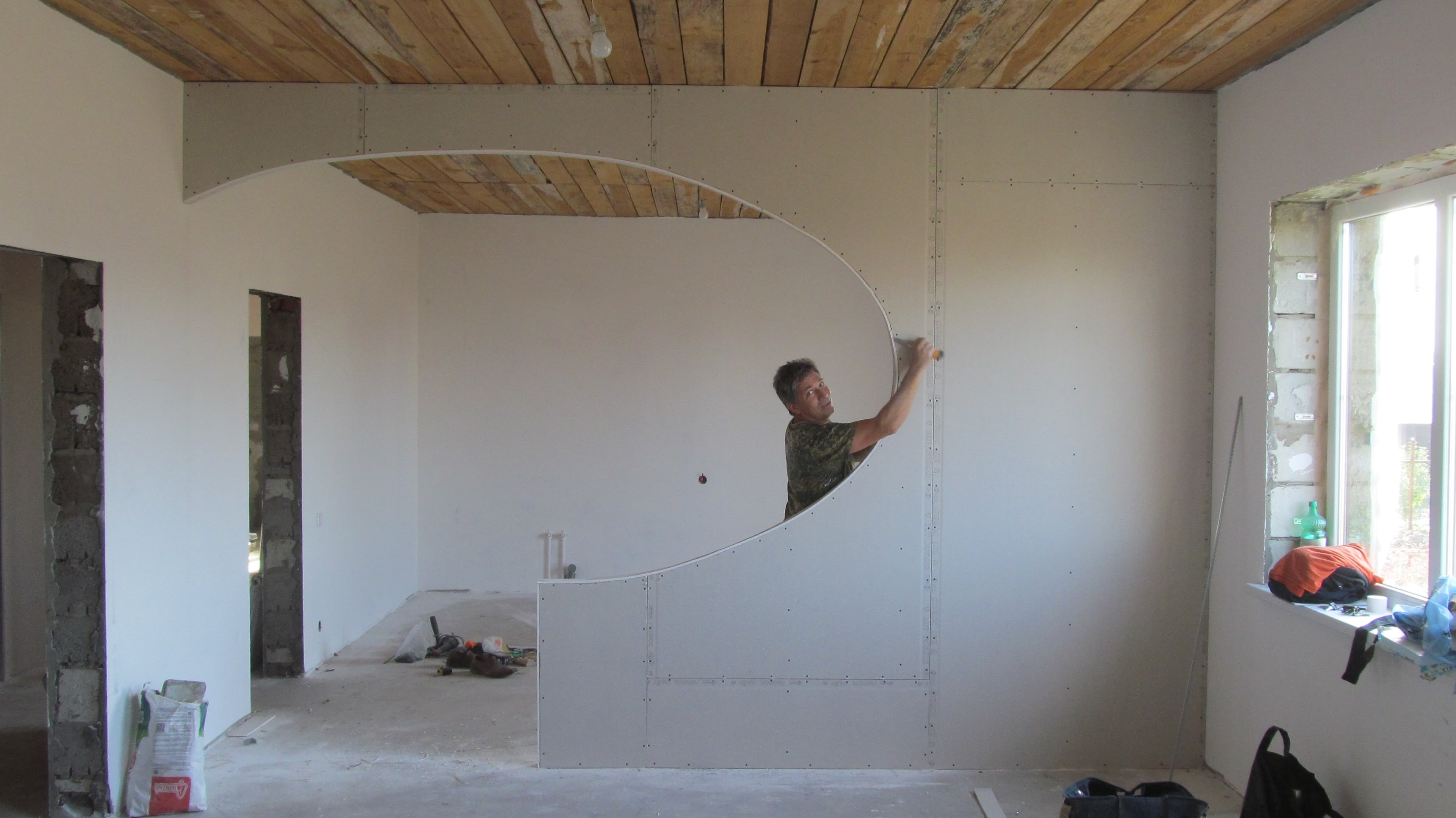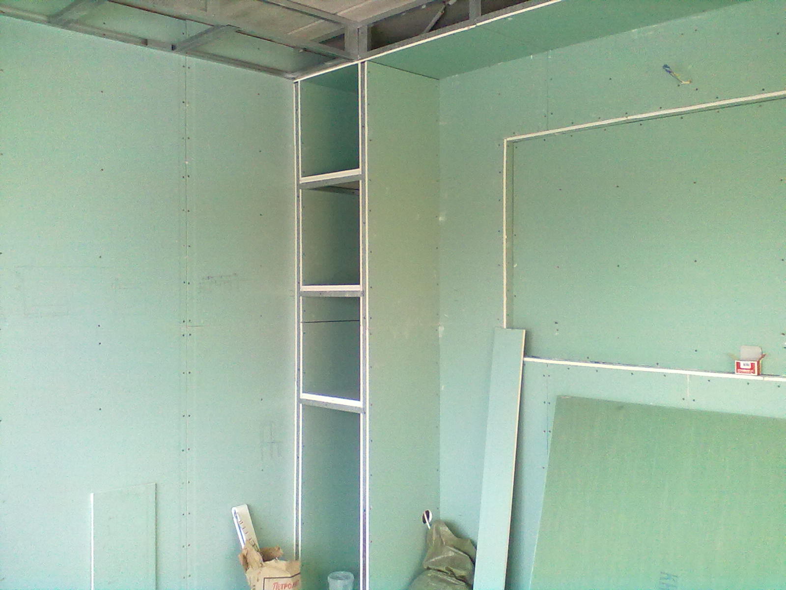 Cubriendo el marco ensamblado con paneles de yeso y posterior acabado rugoso de la estructura terminada.