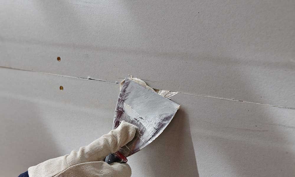 Masilla frotó los sombreros de los tornillos y todas las juntas entre las láminas de paneles de yeso. Para el trabajo, se recomienda usar una espátula convencional y excluir la apariencia de capas masivas de masilla.
