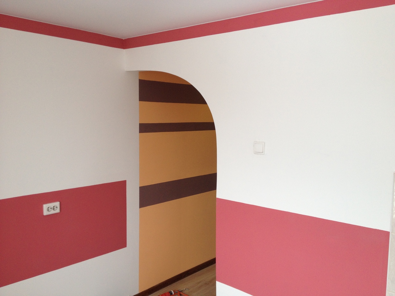 Las irregularidades en el acabado, que se pueden ver al final del trabajo, se pueden ocultar con una decoración de pared (pintura o empapelado con patrones). Además, una instalación de este tipo al lado de la lámpara de pie lo ayudará, en el cual una aspereza o defecto estará a la sombra del iluminador cuando esté encendido.