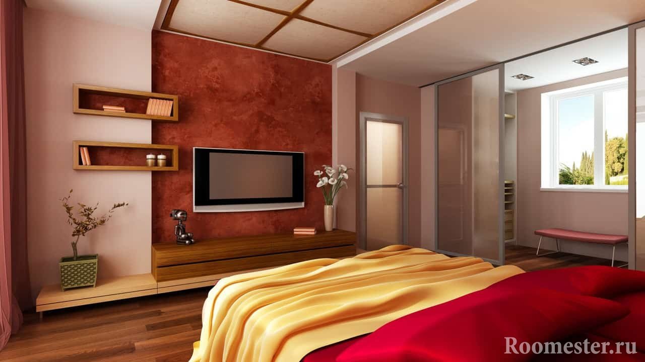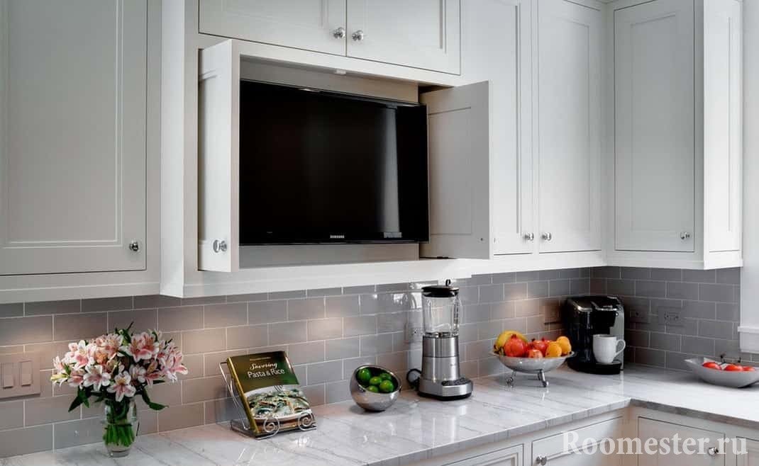 Armario o pared. Las tiendas venden gabinetes modernos, que ya tienen un lugar para que el dispositivo vea programas de televisión y películas. Un gabinete similar también se hace individualmente;