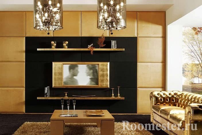 Rodear con una baguette. Baguette es un elemento universal de decoración. Aplícalo en todas partes, creando un diseño único, prácticamente, de la nada. Es apropiado para el diseño de su dispositivo en el interior: el televisor suspendido en la pared a lo largo del contorno está enmarcado por una baguette. Como resultado, se obtiene el efecto de la imagen. A menudo, se crea una pantalla de pasta a partir de una baguette, y el plasma se monta en el centro de la "pantalla". Hay muchas opciones para "jugar" con una baguette, todo depende de tu imaginación y de la cantidad de espacio libre.