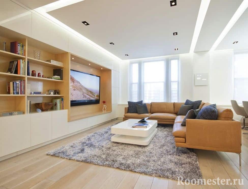 Primero decida dónde (en qué lado de la habitación) colocar el televisor. A menudo es él quien es el punto de partida desde el cual los diseñadores comienzan su trabajo de diseño.
