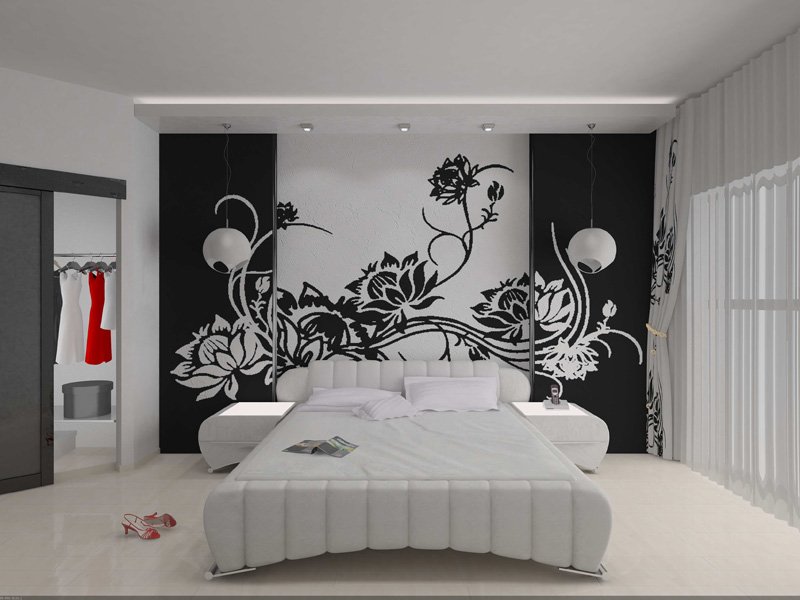 Las diferentes habitaciones usan diferentes patrones: en el baño, la cocina, la logia abierta, la humedad a menudo es elevada, porque los dibujos en gouache y acuarelas de los tubos son inaceptables aquí, debido a la inestabilidad a los efectos del agua. Para el dormitorio, se prefieren tramas tranquilas, colores suaves y una cantidad mínima de contrastes nítidos. En la guardería, por el contrario, cuantos más colores, mejor, pero solo con la condición de que las paredes estén pintadas de un color opaco. Las plantillas hechas en colores pastel son ideales para lugares de descanso, sueño, meditación.