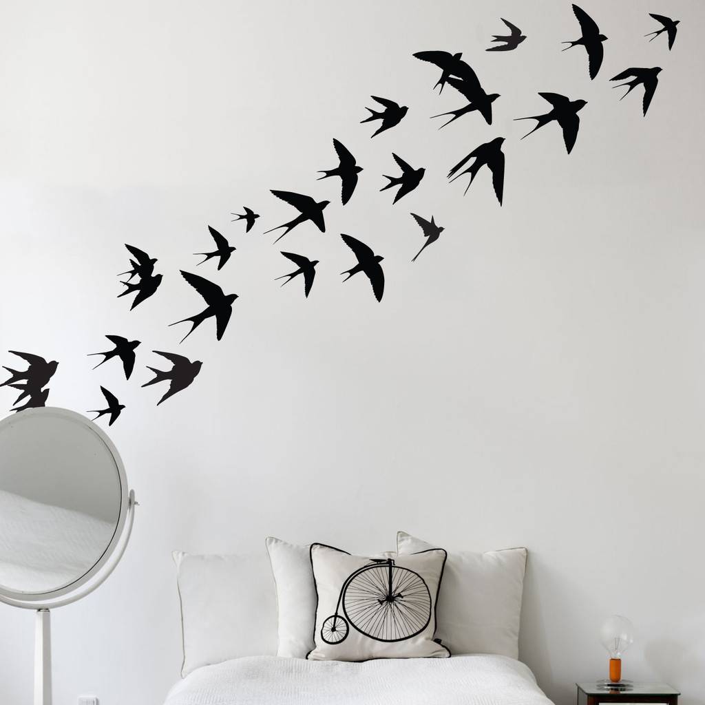 Con la ayuda de plantillas, es posible decorar originalmente no solo paredes pintadas o empapeladas, sino también techos, pisos, gabinetes, espejos, particiones de vidrio, puertas, ventanas, una chimenea, etc. Para habitaciones espaciosas, son adecuadas las imágenes de paredes grandes que llenan un vacío. Las habitaciones estrechas están decoradas con cuadros pequeños, elementos individuales que no abarrotan el espacio. Muy a menudo, las decoraciones estampadas se colocan alrededor de puertas de entrada o interiores, enchufes, interruptores, espejos, sobre camas, mesas, mesitas de noche. En el baño, se forma espacio sobre cada accesorio de plomería; en la guardería, la gran mayoría de las superficies libres generalmente se pintan.