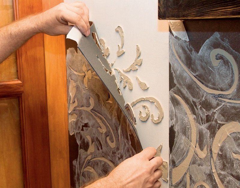 Es importante tener en cuenta que cuanto más lisa sea la pared u otro plano, cuanto más densa se adhiera la plantilla a la pared, es menos probable que haya defectos en el patrón futuro, aunque el pegamento no evita que la tinta fluya por completo. Si se planea usar la plantilla varias veces, no es necesario lavar completamente la composición adhesiva antes de usarla.