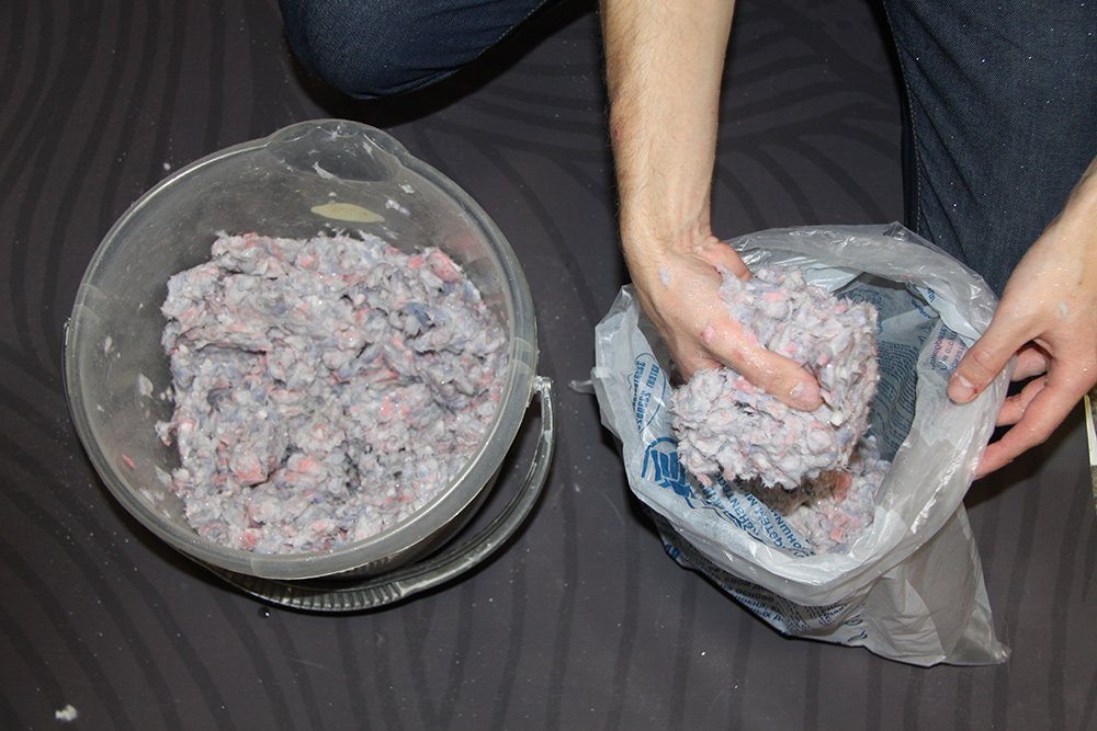 Revuelva el papel tapiz líquido mejor con las manos, para no dañar los elementos decorativos. El material es completamente seguro para la piel de las manos;