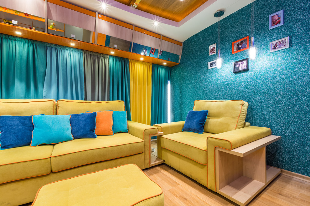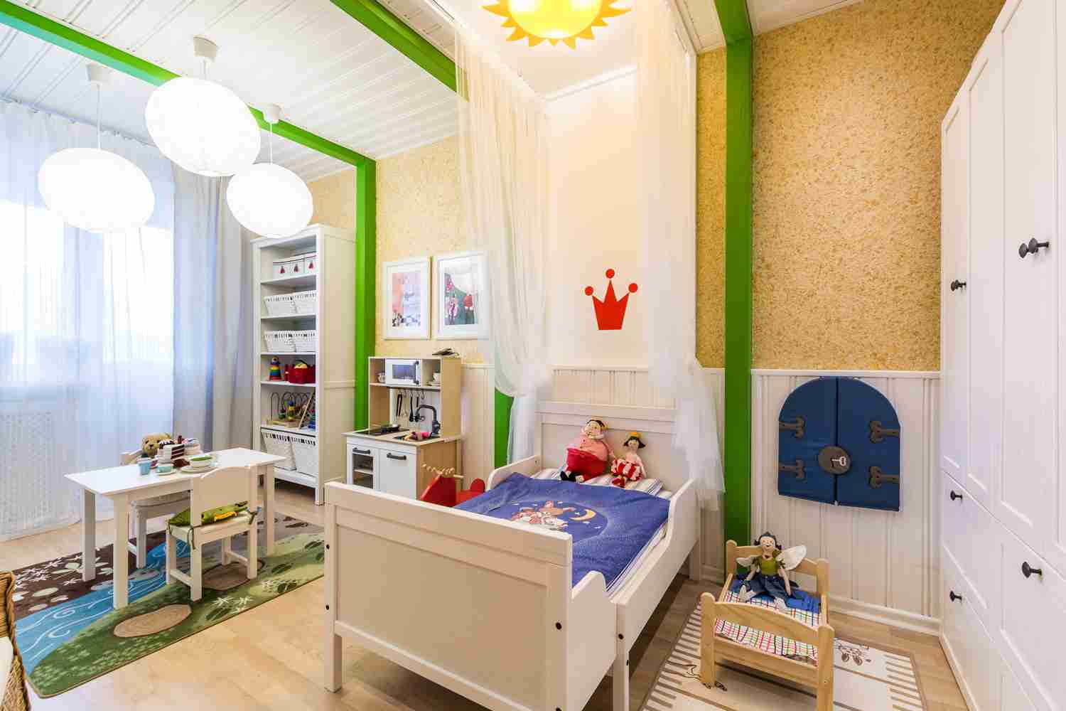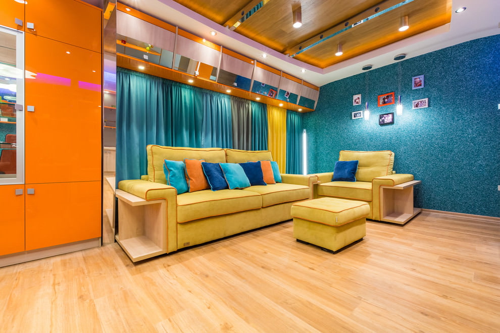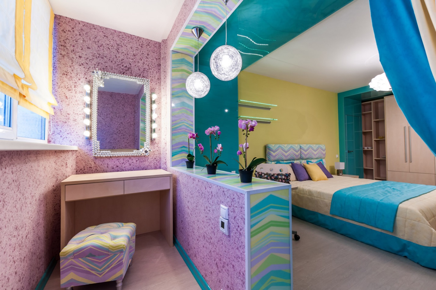En habitaciones espaciosas, los colores saturados se adaptarán, los patrones grandes y los dibujos, varias decoraciones se verán apropiadas.