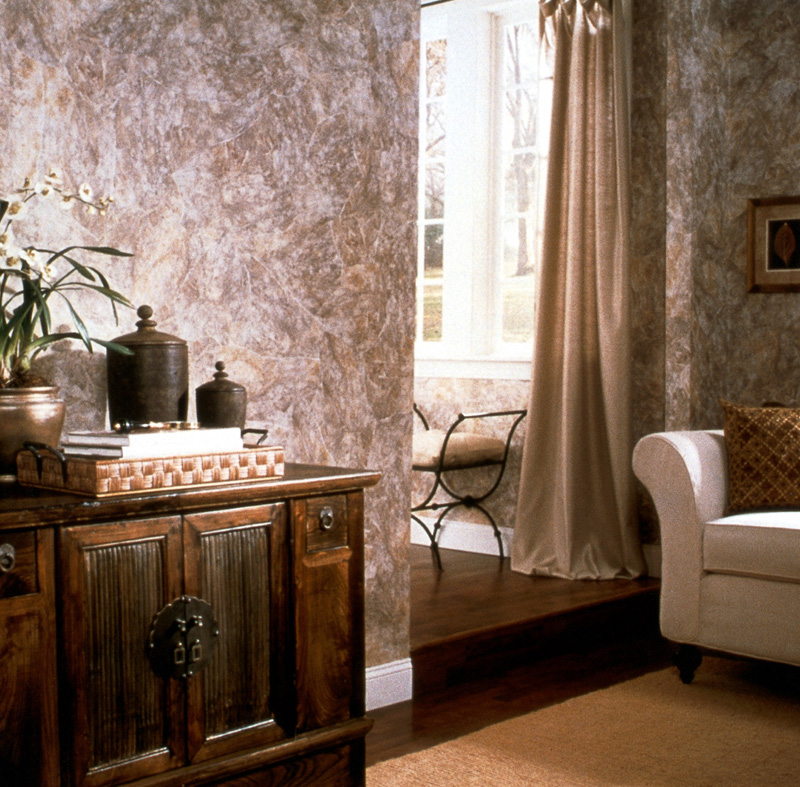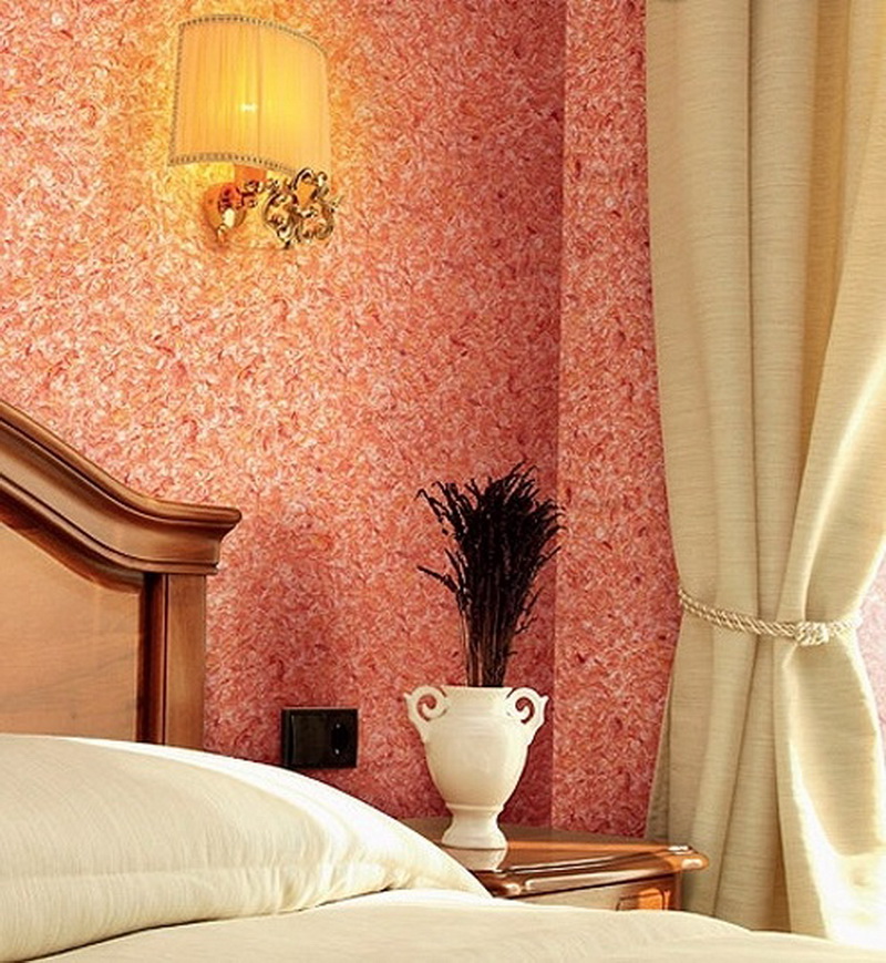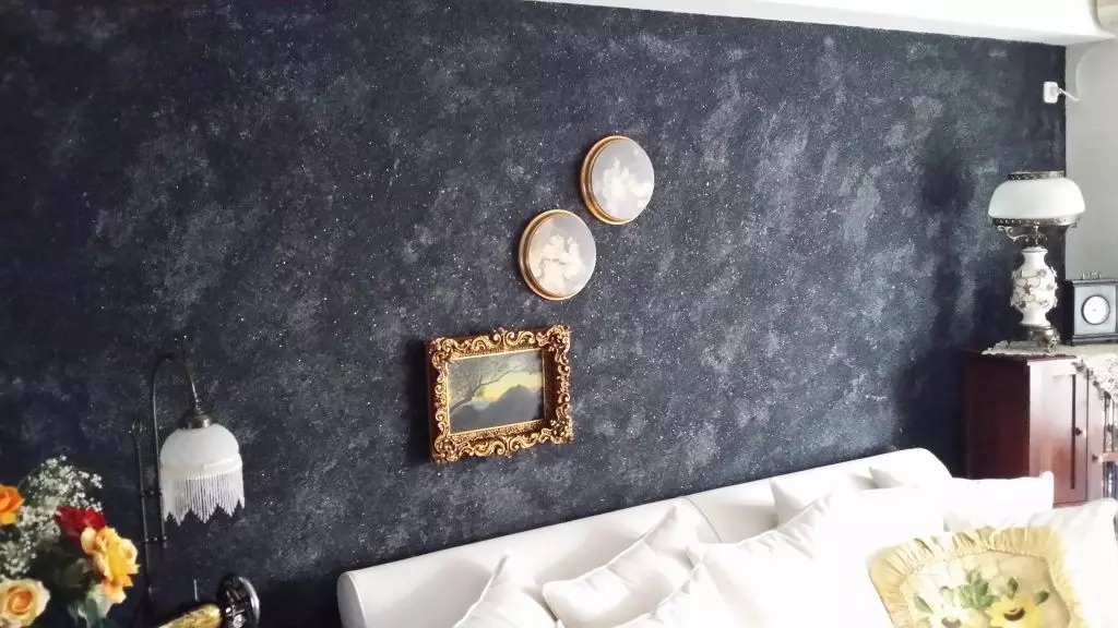 Tipo de fondo de pantalla. Varias mezclas acuosas en forma de aditivos pueden tener seda, algodón, relleno de celulosa.Añaden decoración debido a destellos, mica, hilos multicolores, astillas de madera y otros materiales.