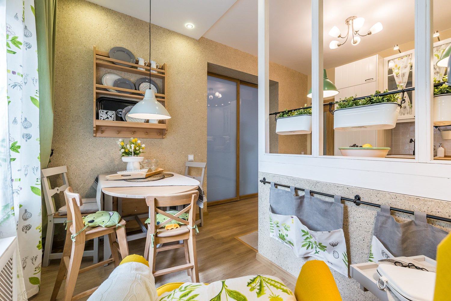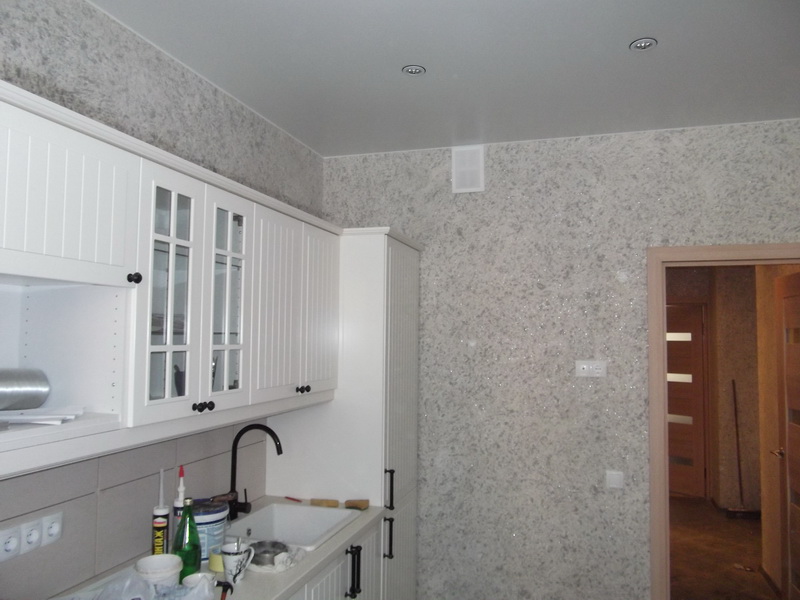 Vale la pena considerar el hecho de que el revestimiento no se puede lavar y, después de todo, la contaminación en la cocina aparece todos los días. La suciedad deberá eliminarse con un cuchillo, y si se daña un área separada, deberá cubrirse con una composición nueva. Por lo tanto, las áreas de mayor riesgo, como un delantal, están mejor revestidas con losas convencionales. Además, el fondo de pantalla se puede recubrir con una capa de barniz acrílico.