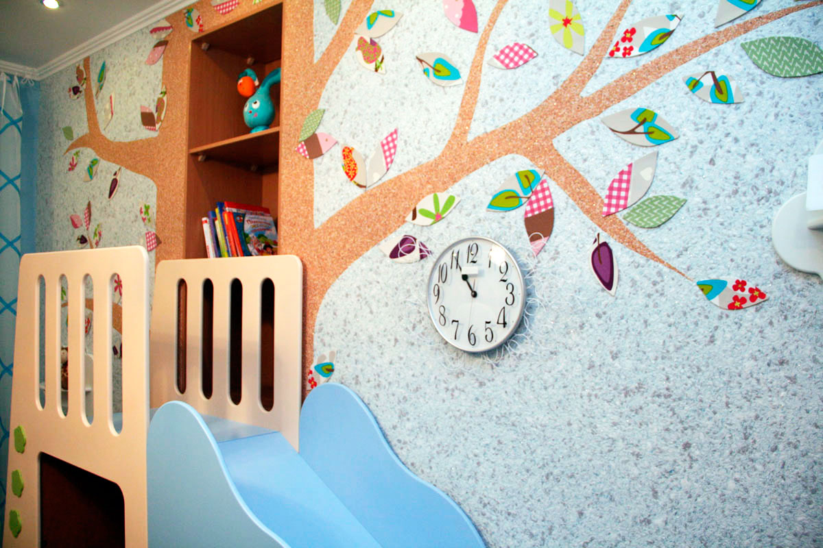 Debe tenerse en cuenta que los niños crecen lo suficientemente rápido, sus intereses cambian y, con el tiempo, se requerirá el reemplazo de la decoración antigua. Después de todo, aunque el bebé es pequeño, los padres eligen su propio diseño, pero en la adolescencia, los niños mismos comienzan a buscar su propio estilo, por lo que la decisión final debe acordarse juntos. Y el hecho de que el revestimiento es bastante fácil de quitar humedeciendo un área determinada, actúa como su gran ventaja.