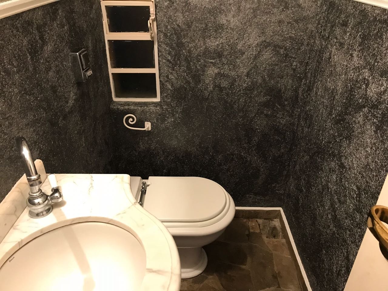 Al elegir una composición líquida para decorar el inodoro, también vale la pena considerar el factor de humedad. Aquí, en las paredes, a menudo hay varios objetos de metal, sobre los cuales puede aparecer óxido en el futuro, por lo que deben estar preparados, pintados. Aquí, como el baño, es mejor cubrir adicionalmente las paredes con pintura acrílica incolora, lo que aumentará la vida útil del material de acabado.