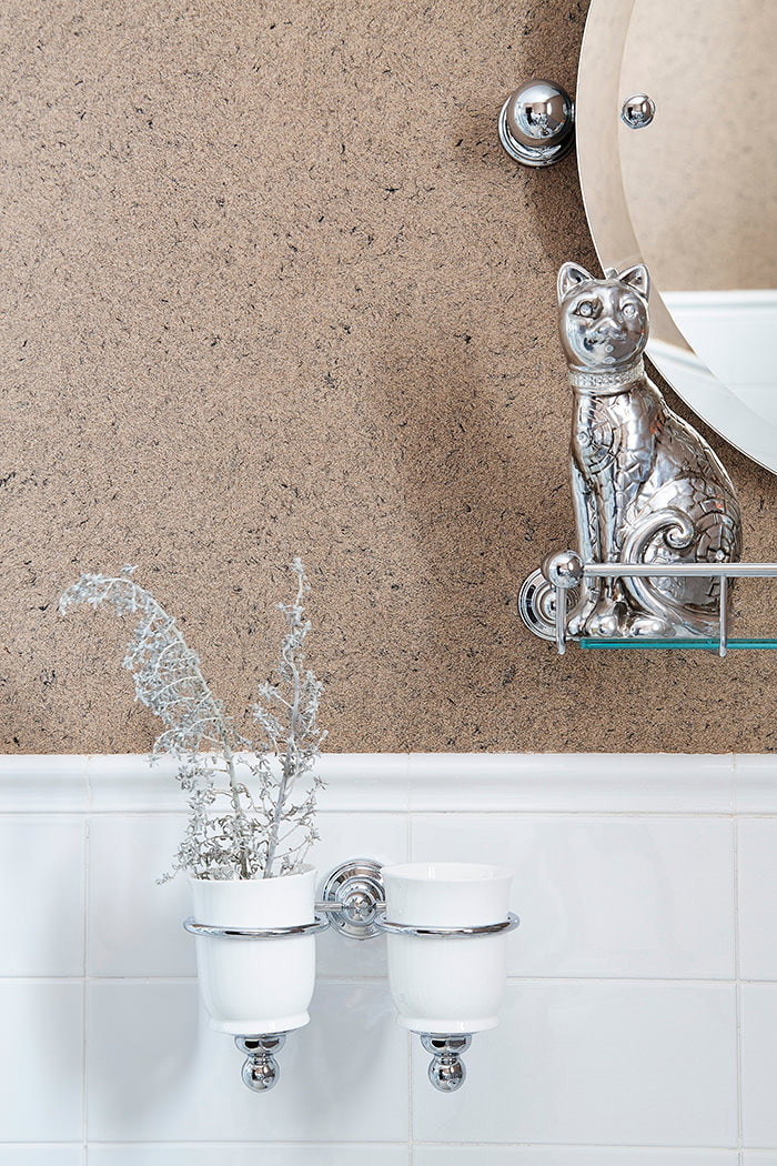 Con la ayuda de composiciones líquidas, puede diseñar bellamente un baño. Decorarán la habitación, pero durarán muy poco tiempo. Después de todo, el baño es la habitación más húmeda de la casa, donde la temperatura cambia constantemente. En general, no se recomienda pegar ningún tipo de papel tapiz en esta sala, incluidos los productos con tecnología de aplicación líquida. De la sobresaturación con humedad, simplemente desaparecen, lo que implicará costos financieros innecesarios.