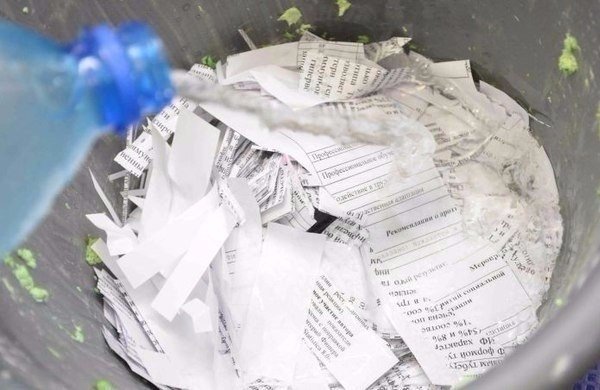 Moler el papel. Se puede rasgar manualmente, cortar con tijeras y pasar por una trituradora.