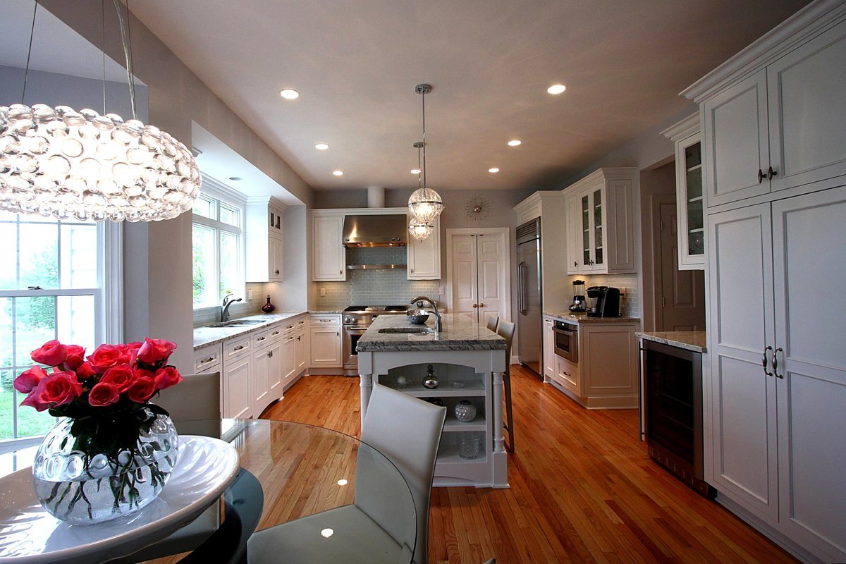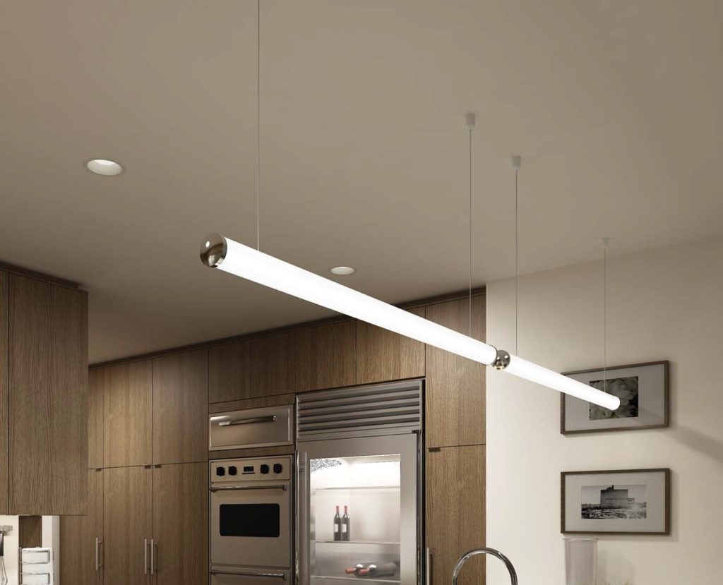 La cocina La fuente de luz principal debe construirse sobre la mesa. Si hay varios de ellos, es necesario mantener la distancia correcta entre ellos. Es mejor alinear las lámparas por encima de un mueble cuadrado y rectangular; cualquier disposición es adecuada para una mesa ovalada;