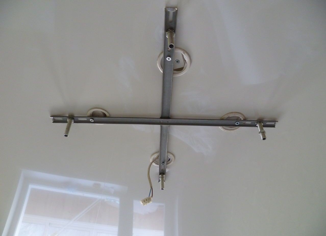 Las luces de techo se montan en bastidores ajustables, que se instalan antes de estirar el lienzo. Las instancias empotradas forman un solo plano con una película o tela, unida con ganchos o bastidores.