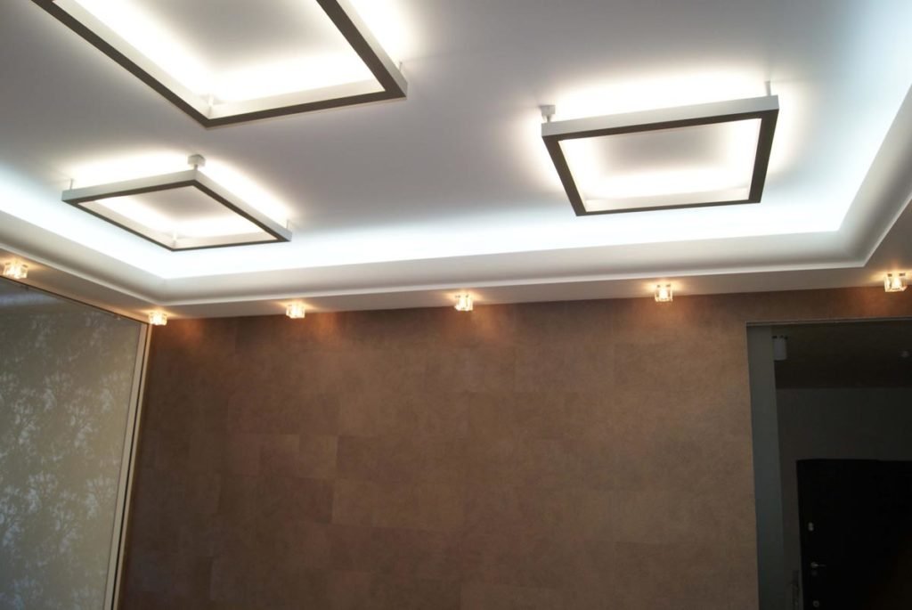 Uno de los elementos más populares para falsos techos. Las lámparas LED pueden iluminar efectivamente una habitación de cualquier tamaño, al tiempo que crean decoraciones originales. Para ellos, son adecuados los dispositivos de punto, los colgantes y las lámparas empotradas. La luz de fondo viene en una amplia variedad de diseños y formas.