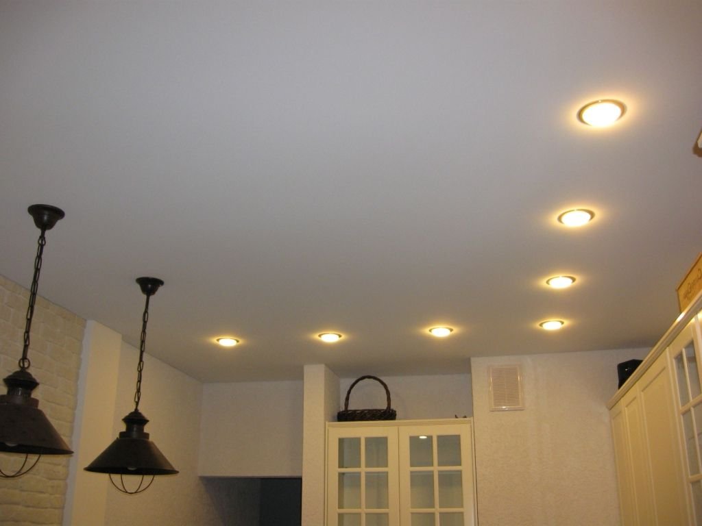 A menudo se utiliza para techos tensados de PVC. Las lámparas fluorescentes tienen un principio de brillo especial, se calientan un poco y ahorran energía. La luz de las luces incorporadas no penetra el espacio entre el techo y el lienzo estirado. Esto permite elegir cualquier diseño de revestimiento, aplicar una textura diferente, terminar el color, preservar completamente las características decorativas.