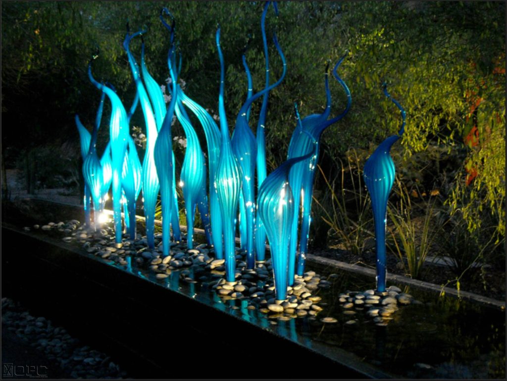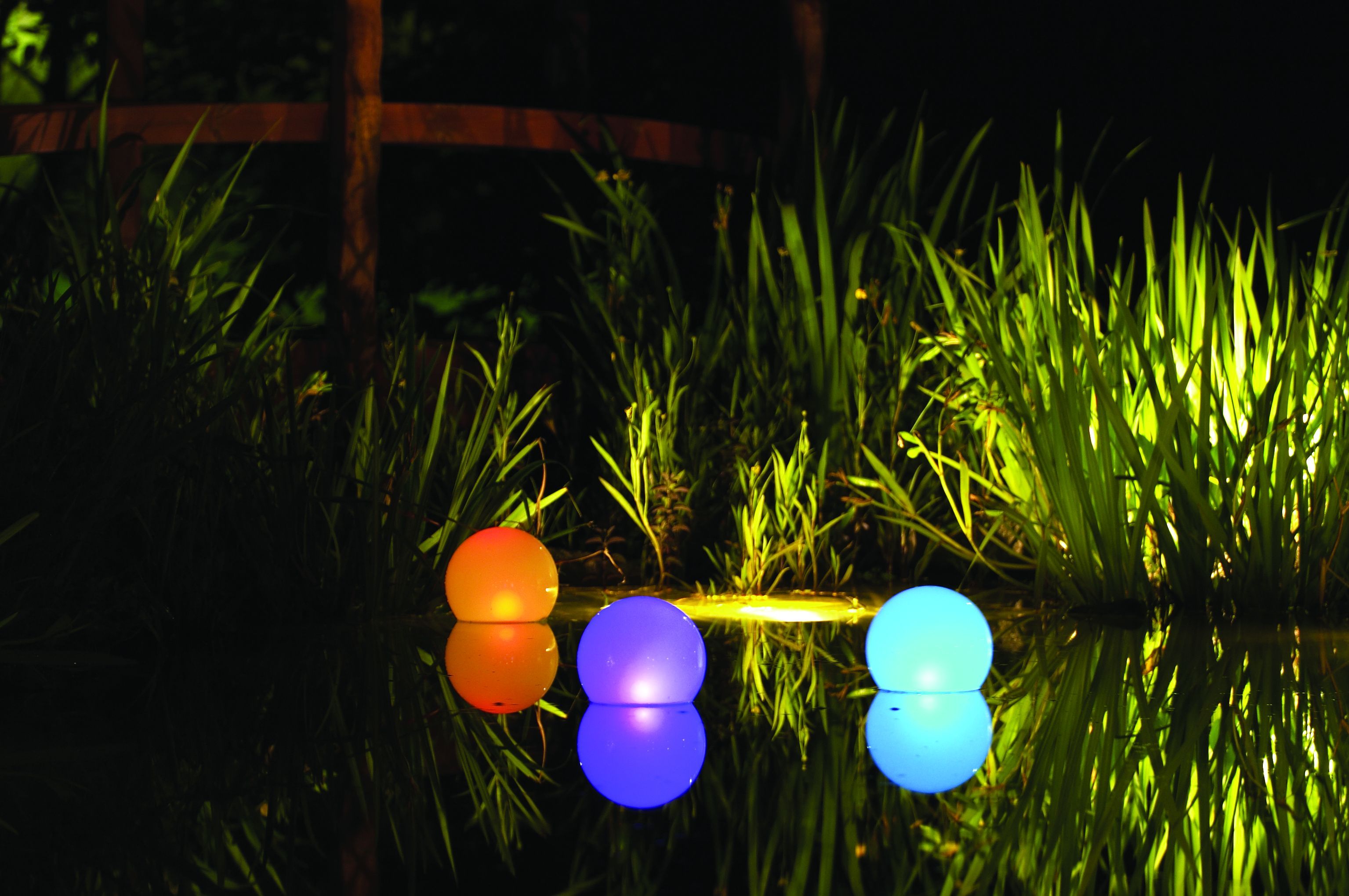 Anteriormente, las piscinas, estanques artificiales, cascadas y fuentes, en la oscuridad, solo se iluminaban desde el exterior. Ahora es posible organizar la iluminación subacuática. Para hacer esto, se producen accesorios especiales impermeables y tiras LED de diferentes colores. Para la instalación bajo el agua, son adecuados los modelos con el mayor grado de protección energética: IP 68. Para la iluminación subacuática, se pueden utilizar dispositivos suspendidos o empotrados con una carcasa sellada. Cuanto más profundos estén los accesorios a prueba de agua, mayor será su nivel de potencia. Por ejemplo, para la iluminación decorativa de la piscina, será suficiente instalar tiras de LED en sus paredes, ligeramente por debajo del nivel del agua. Y para estanques profundos, las luminarias con una potencia de 15 a 20 vatios son adecuadas. Los controladores especiales le permiten ajustar el color y la intensidad de la luz.