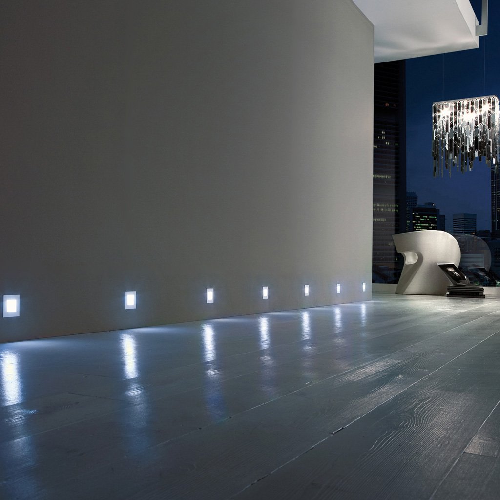 Cuando se instala, la carcasa de los accesorios empotrados está total o parcialmente oculta debajo de la superficie del techo, la pared, el piso y los muebles. Por el tipo de diseño, los dispositivos se dividen en paneles o modulares, en puntos, estándar o muebles. Pueden crear un brillo difuso o direccional. El panel, los accesorios modulares se producen en forma de cajas cuadradas o rectangulares con una cubierta de plástico transparente. Dichos dispositivos tienen una apariencia industrial, por lo que a menudo se encuentran en edificios públicos. Emiten un brillo direccional, por lo que la habitación se ilumina de manera uniforme, es necesario instalar varias cajas de paneles con LED.
