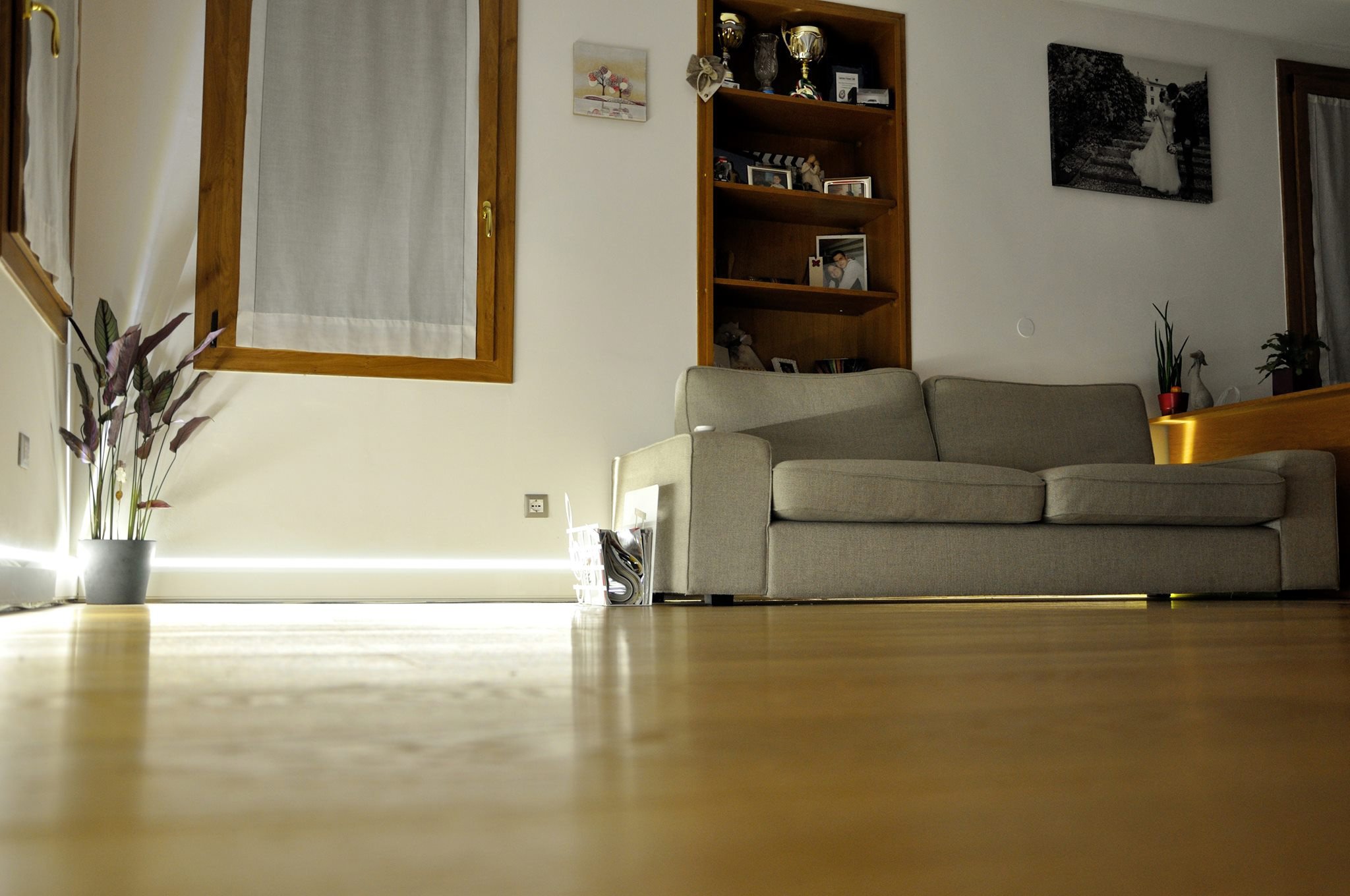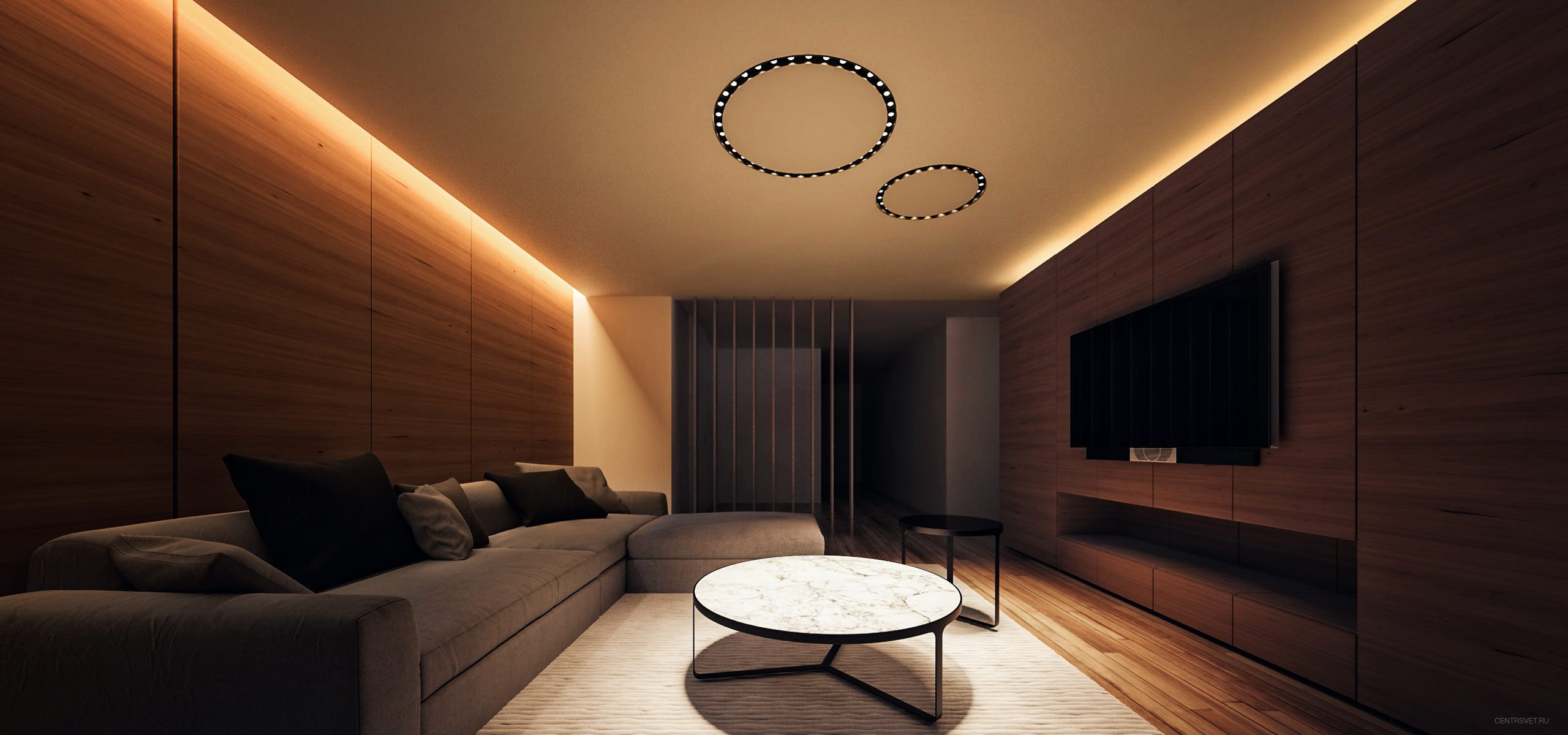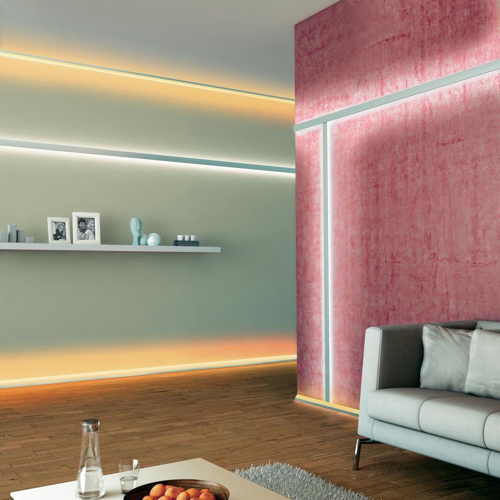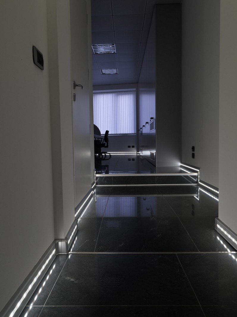 Los grandes espacios habitables se pueden dividir en zonas no solo con transiciones de color y particiones. Para distinguir entre zonas, también se utiliza la tira de LED.