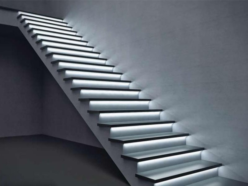 Por razones de seguridad, la iluminación de la escalera no debe ser demasiado brillante. De lo contrario, aumenta el riesgo de lesiones.