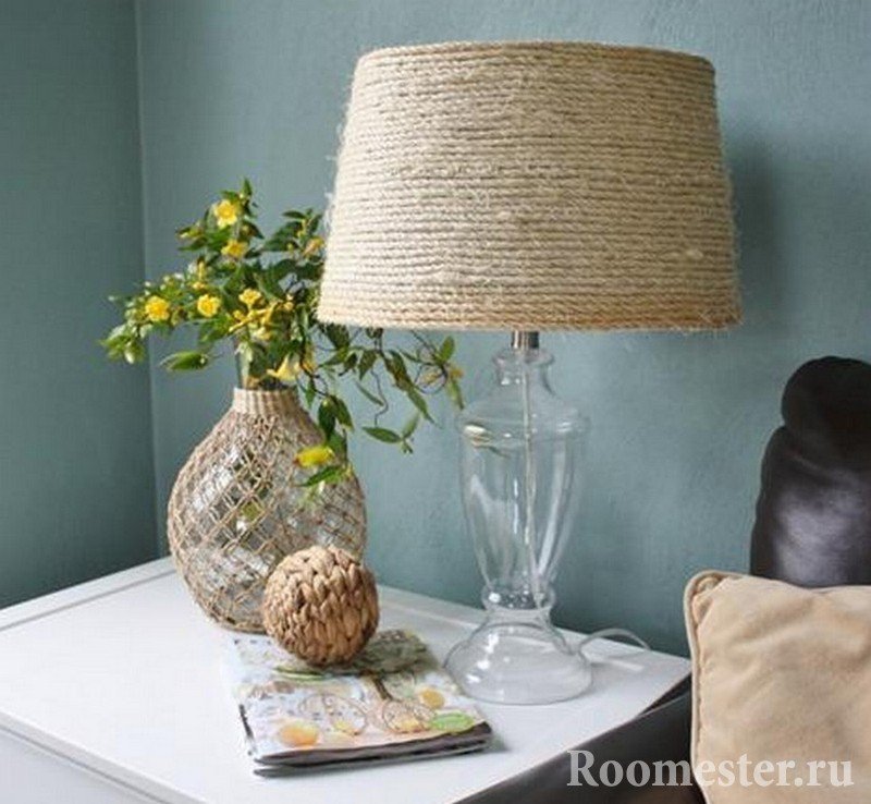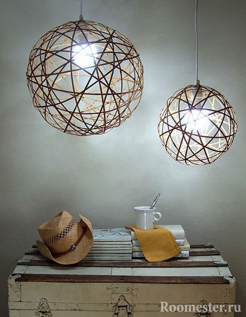 En cualquier hogar, puedes encontrar muchos objetos que se pueden usar para decorar la lámpara.Y si miras en el garaje, puedes crear un estudio completo de lámparas de diseño. Lo más importante es mostrar imaginación y abordar de manera poco convencional la elección de los materiales para la decoración.