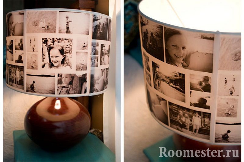 Después de encender la lámpara con dicho marco, aparecerán figuras divertidas en las paredes de la habitación. Usando tela para decorar una lámpara