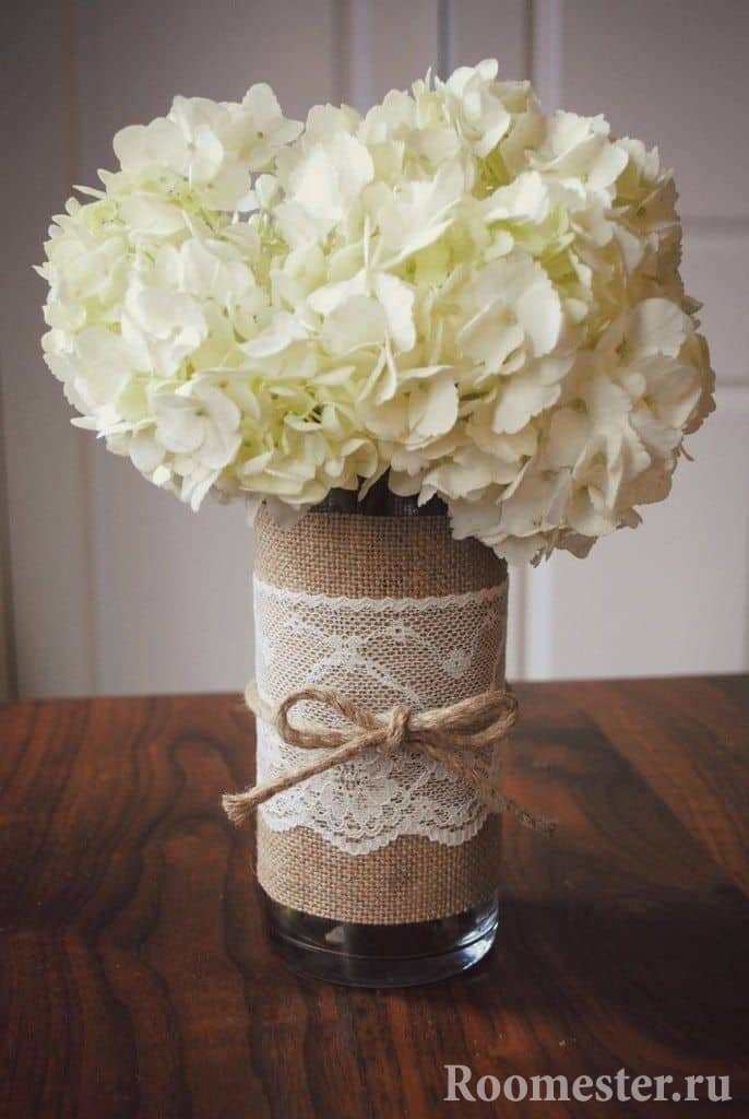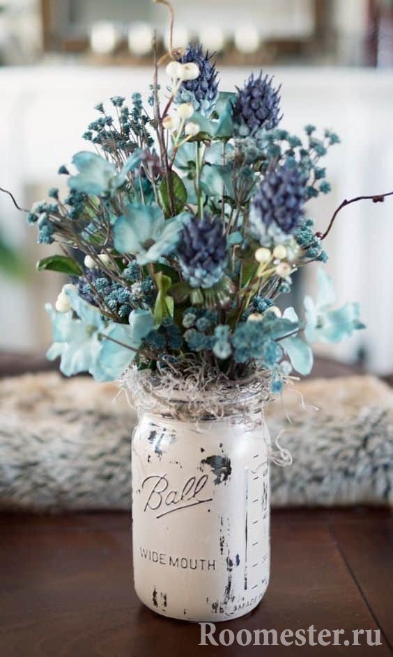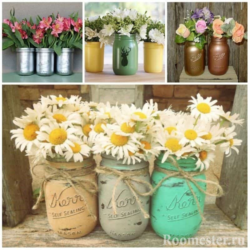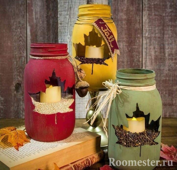 Decorar frascos de vidrio con sus propias manos para una decoración similar es bastante simple. Puedes usar latas de cualquier forma aquí.