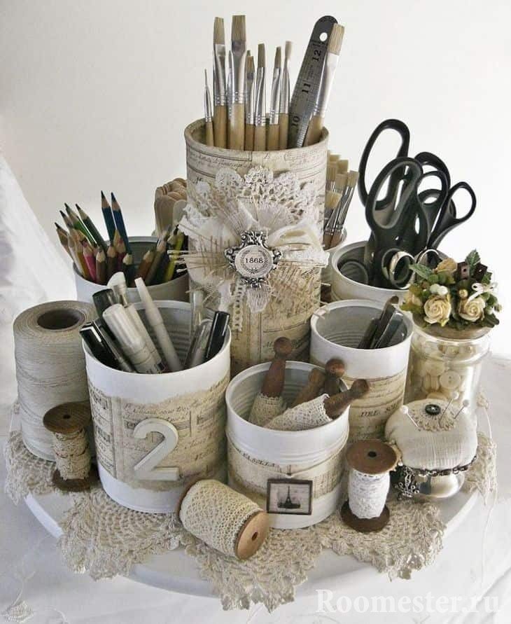 Después del uso principal, no debe tirar latas pequeñas, porque en la cocina serán simplemente insustituibles. Puede almacenar cereales en ellos, como generalmente se hace, y usarlos como recipientes para cubiertos. Puede usar estos vasos para servilletas.