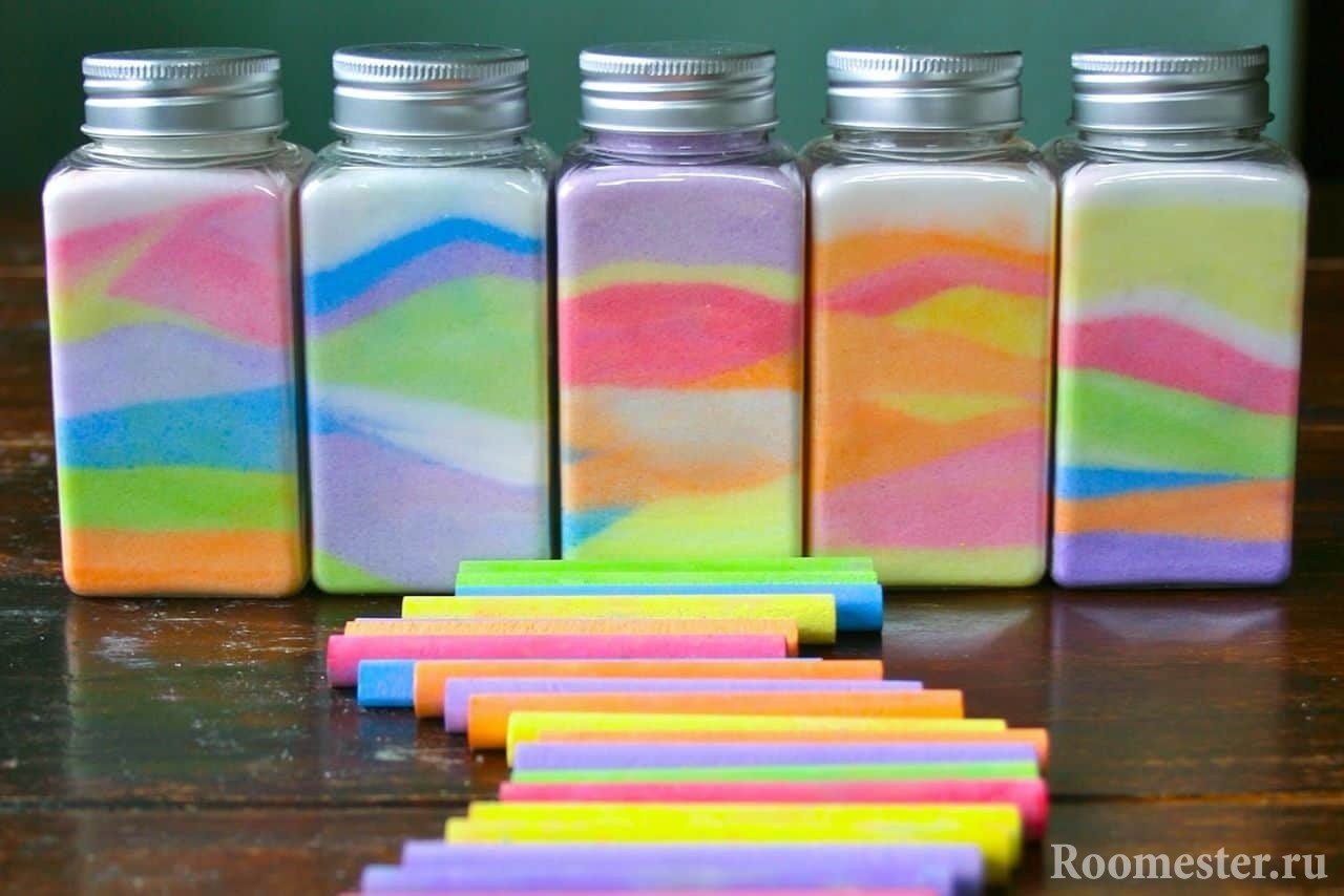 Si no te importa la aplicación práctica, pero el deseo de hacer algo hermoso permanece, decorar latas con sal es para ti. Muchos de ustedes lo han visto vendiendo especias abjasias o georgianas en recipientes donde los colores cambian de uno a otro.