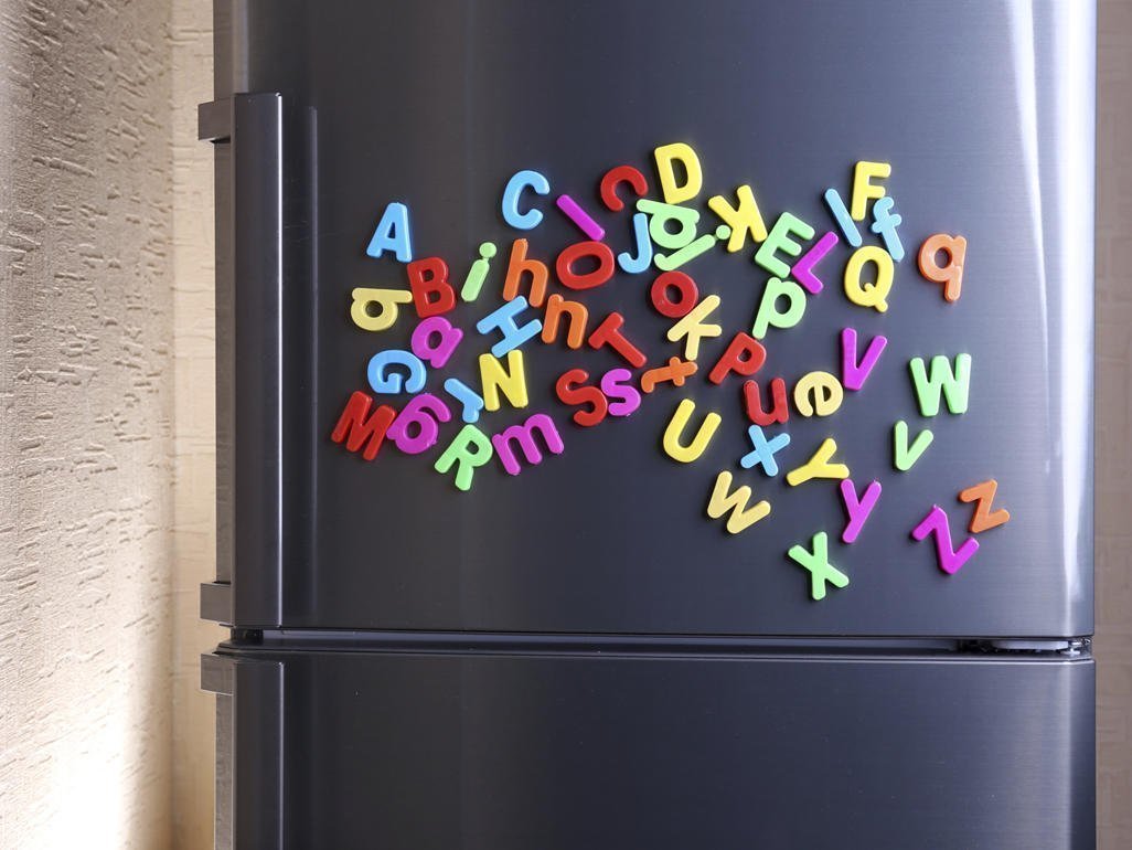 Pequeñas abolladuras pueden ocultarse debajo de imanes decorativos, un tablero magnético;