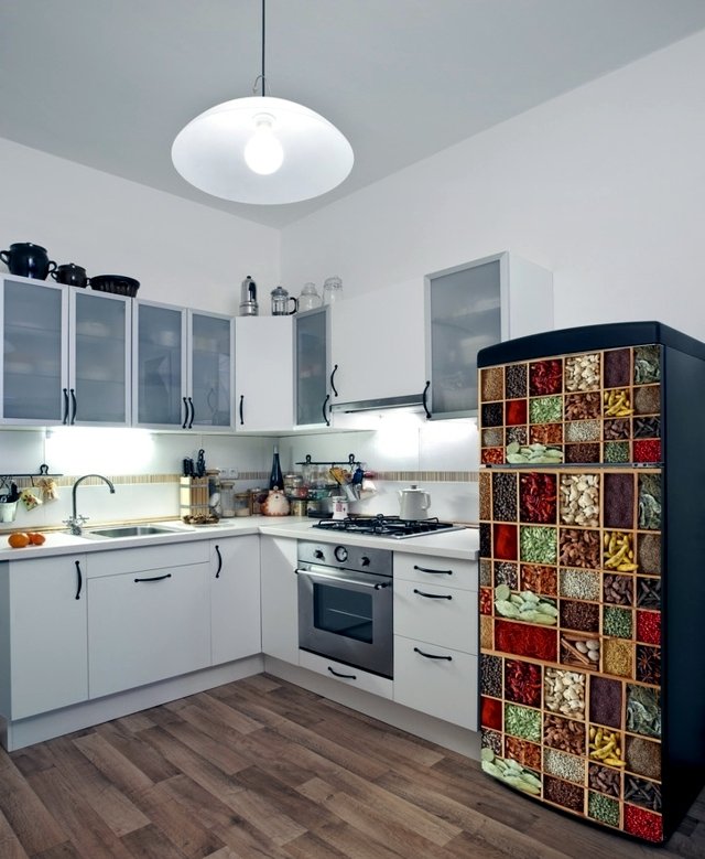 Rareza con lados redondeados y una manija de aspecto extraño o un nuevo estilo de alta tecnología, siempre hay una manera de hacer una decoración de nevera con tus propias manos: