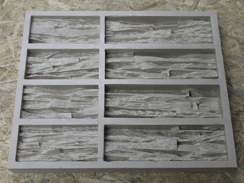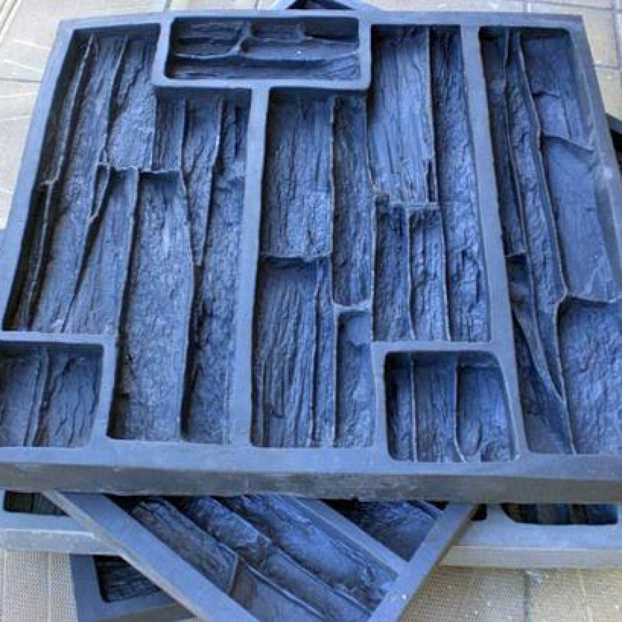 La apariencia de una piedra decorativa depende de su forma. Para variar, puede preparar varias plantillas diferentes a la vez, cuyas muestras se alternarán durante la instalación. Por lo general, use módulos de bandeja que constan de al menos diez celdas. Las formas grandes acelerarán el proceso de producción de piedra, si necesita mucho. En cuanto a los materiales, generalmente se usa silicona o plástico. Desafortunadamente, la vida de tales moldes está limitada por un cierto número de rellenos. Como una opción más costosa, el poliuretano es adecuado. Estos moldes se pueden reutilizar tanto como desee, mientras que la forma conservará su aspecto original. Como muestra para la matriz, cualquier piedra que le guste es adecuada.