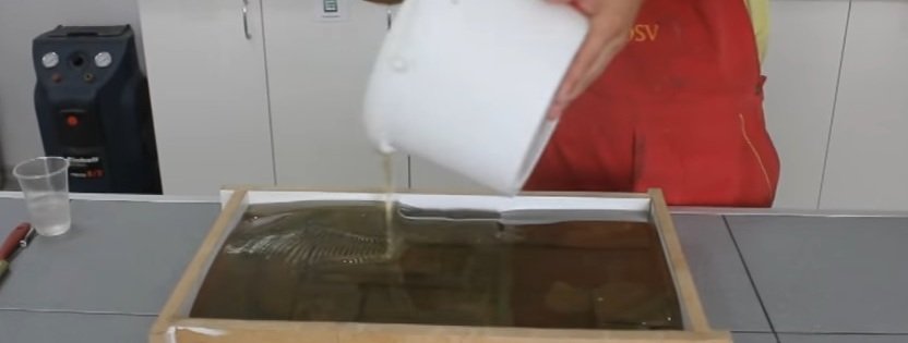 Los moldes de silicona al verter una mezcla de yeso u hormigón, que se calientan durante la solidificación, deben protegerse más. Para estos fines, se colocan en 2/3 en un recipiente especial con arena.