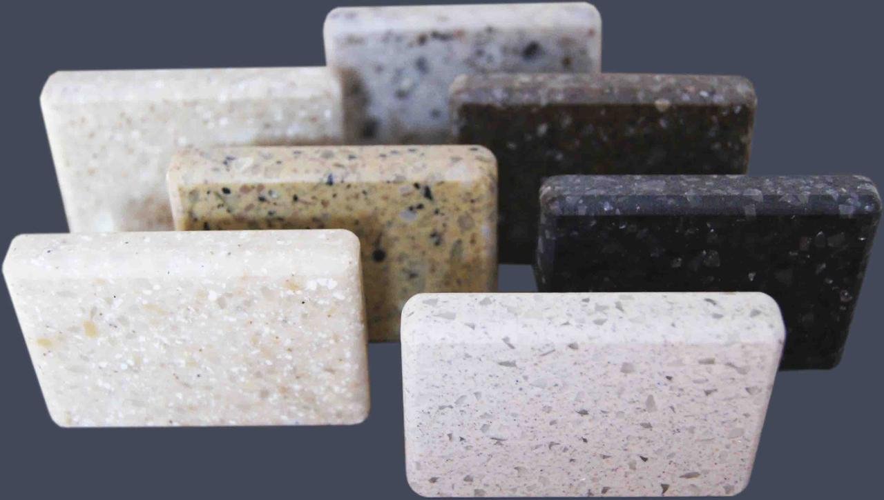 Piedra acrílica. Material práctico y económico que se usa solo para decoración de interiores. Los fabricantes ofrecen una amplia gama de tonos. La piedra acrílica no acumula suciedad y es fácil de limpiar con un paño húmedo.
