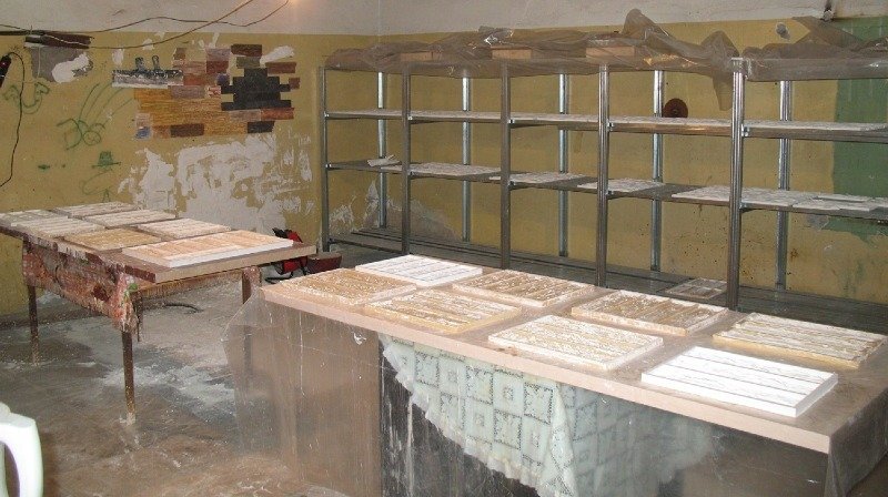 Después del endurecimiento parcial, las piedras se retiran de los moldes y se someten a un secado final.