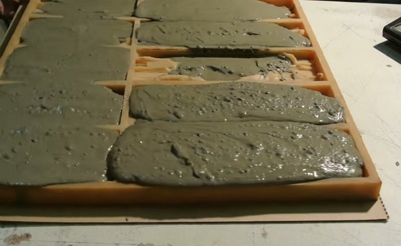 El mortero de yeso tiene un gran inconveniente: se fragua rápidamente. Por este motivo, deberá completar los formularios con prontitud. Si el volumen de trabajo es grande, entonces es mejor realizarlo en “porciones” o llamar a alguien para pedir ayuda. Para ralentizar un poco la configuración del yeso, puede agregarle un par de gramos de ácido cítrico. Los moldes se vierten en la mezcla y se agitan suavemente o se pasan desde arriba con una espátula para llenar los vacíos. Después de la solidificación inicial, las piedras se retiran de los moldes y se dejan secar durante otro día.