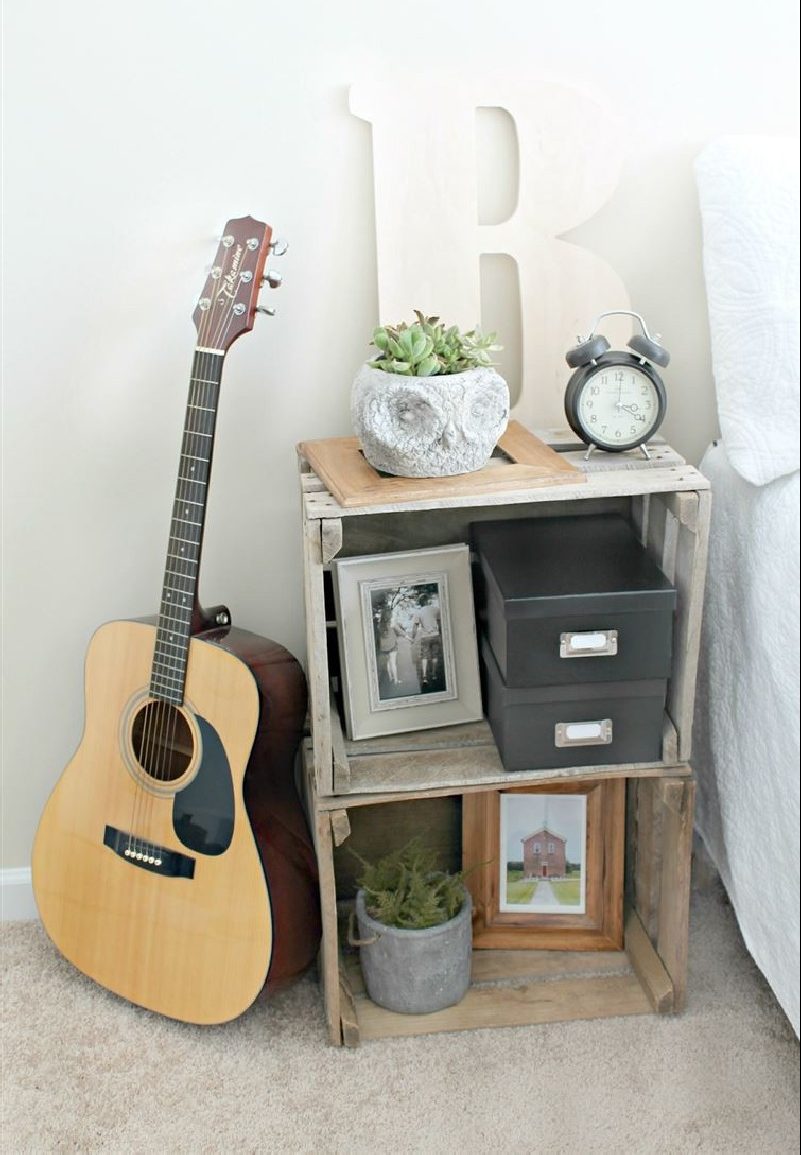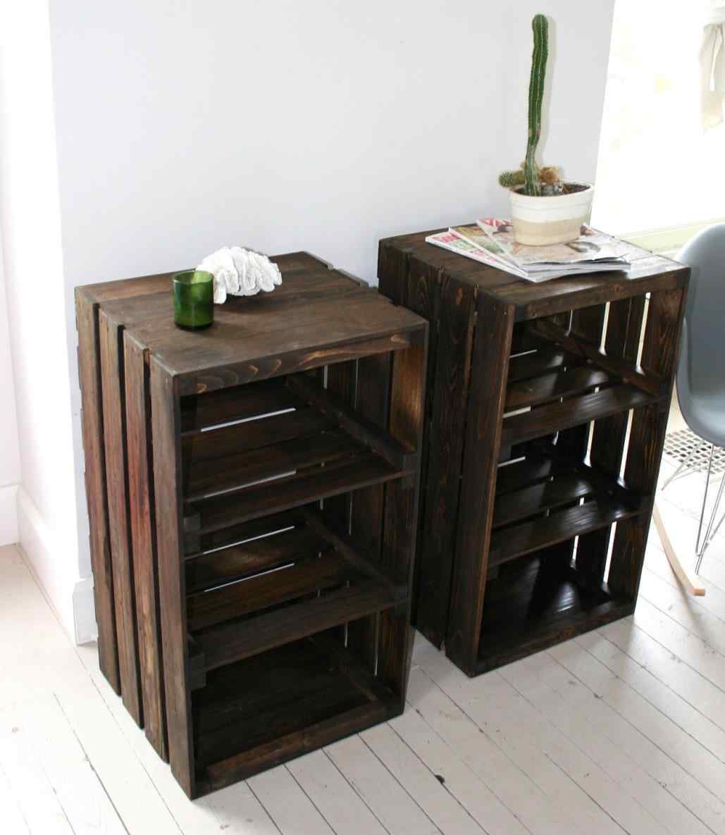 Las cajas, mesas de café y cajas para guardar cosas pequeñas se pueden hacer con cajones en lugar de canastas de plástico o mimbre. En este último caso, elija contenedores con lados altos. Simplemente se lija, barniza o pinta y está equipado con asas combinadas en los laterales para facilitar el movimiento. Las mesitas de noche se ensamblan a partir de dos cajones interconectados. Almacenan fotografías, relojes, teléfonos, revistas y libros, y la cubierta superior se utiliza como estante para lámparas o plantas de interior. Para crear una mesa de café, necesitará: