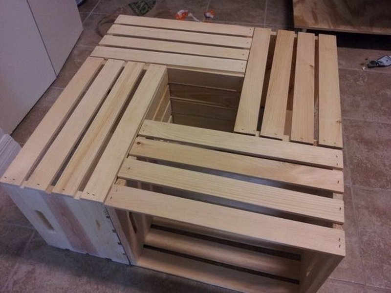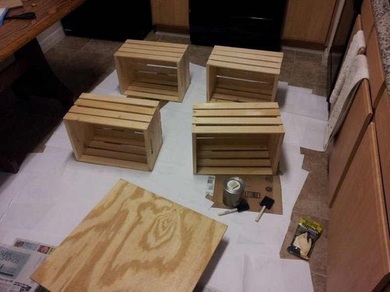 Antes de construir algo de un contenedor de madera, debe prepararlo.Si queda una capa vieja de pintura en la superficie de la caja, retírela con una espátula. Las irregularidades con numerosas "astillas" deben lijarse cuidadosamente para lograr una suavidad perfecta. Luego, la caja se barniza o imprima si se planea pintar. En los casos en que el contenedor se utilizará al aire libre o en habitaciones "húmedas" (bañera, cocina), debe tratarse adicionalmente con compuestos especiales que obstruyan los microporos en la madera y eviten que entre humedad.