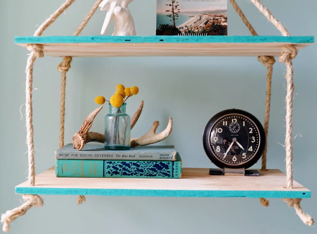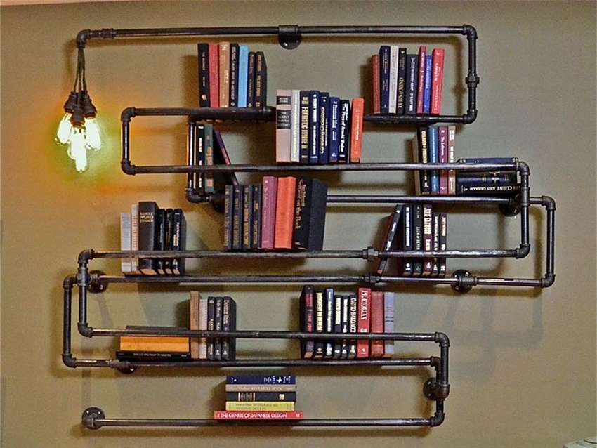 Los maravillosos estantes caseros están hechos de materiales improvisados. Una composición ligera de cajas de dulces octogonales en forma de panal, suspendida de cuadernos innecesarios, será completamente gratis. Una estantería en forma de flecha está hecha de piezas de una tubería de agua con válvulas, y un estante para baño está hecho de bandejas de plástico.Desde la puerta vieja, clavada en diagonal en la esquina de la habitación, obtendrás un excelente armario con estantes de madera contrachapada. Los esquís anchos, envueltos en papel de aluminio y montados en las paredes horizontalmente, también tienen derecho a convertirse en estantes. Los estantes hechos de residuos de MDF y varias piezas de metal decorarán el loft o la sala industrial. Un estante redondo de tamiz viejo, piezas de madera contrachapada complementarán el interior étnico. Los estantes de tablas ásperas, cortes redondos, oblicuos, barnizados, se convertirán en soportes de pared para flores y una gran pieza de corteza gruesa o madera redonda: un diseño de techo suspendido para el diseño de la cabaña, el jardín.