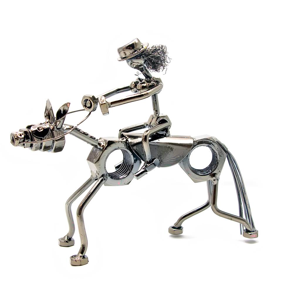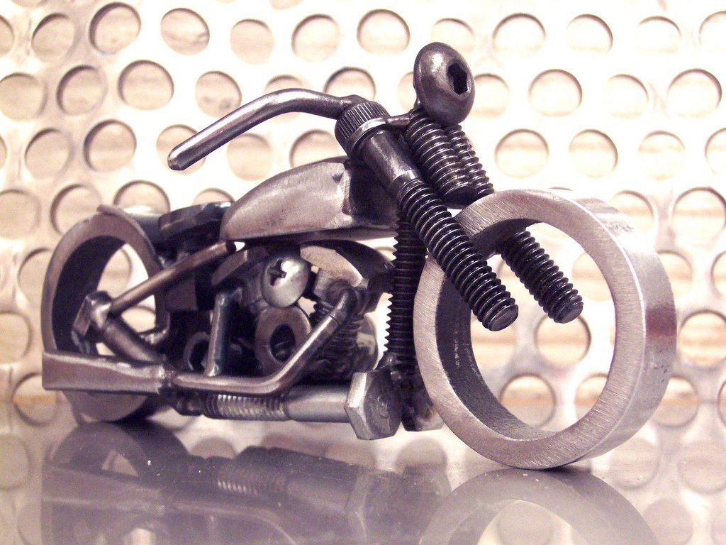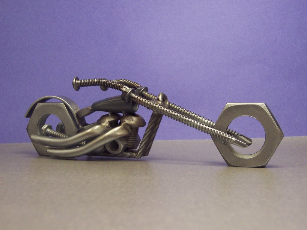 A partir de clavos, tornillos, pernos, tuercas, engranajes con la ayuda de la soldadura, se realizan varias composiciones volumétricas de fantasía, paneles, juguetes interiores y esculturas completas. La cabeza de un caballo de hierro está hecha de los restos de un tubo de metal, cadenas, de un par de tuercas y grandes clavos doblados, una figura de gato, de grandes tornillos autorroscantes y piezas de metal, un bosque decorativo en miniatura. Docenas de clavos decorativos clavados en una pared en círculo sostienen un espejo redondo, un panel de engranajes decora perfectamente el interior del estilo steampunk. Además, los grifos, tuberías y radiadores de calefacción están decorados con pernos y tuercas de metal soldado.