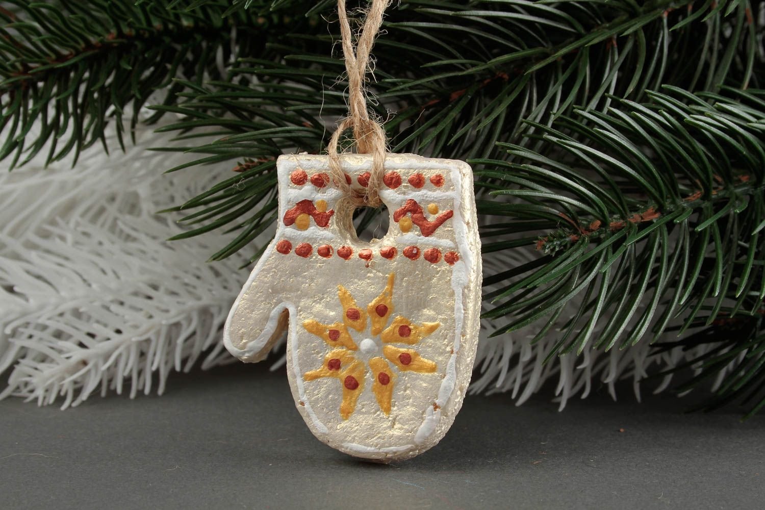 Para que un juguete navideño de masa de sal pueda colgarse de un árbol de Navidad, en su parte superior debe perforar un agujero para el hilo. Hazlo más fácil hasta que el producto se congele.