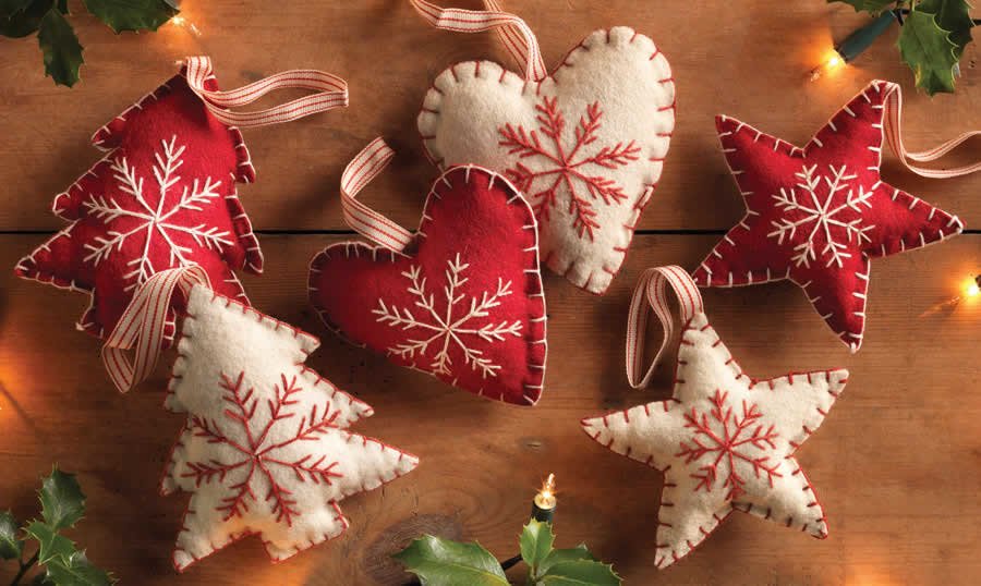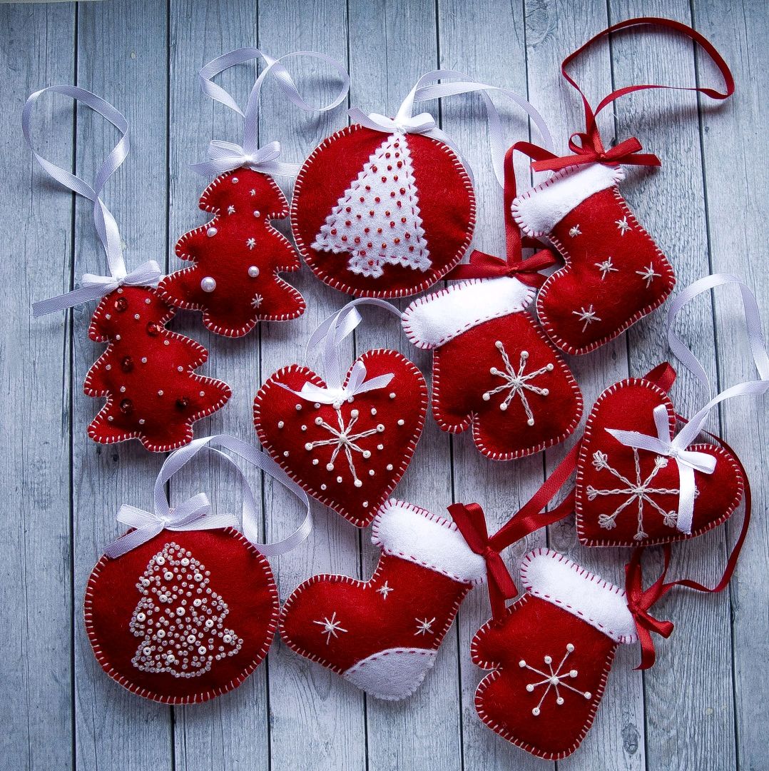 El material plástico flexible puede servir de base para cualquier artesanía, incluidas las decoraciones para árboles de Navidad. El fieltro colorido es suave y agradable al tacto. Los productos que contiene no tienen estatuto de limitaciones. Siempre permanecerán vibrantes, únicos y de moda. Puede crear un verdadero entusiasmo, un símbolo del Año Nuevo, sin tener habilidades de costura y experiencia trabajando con patrones.