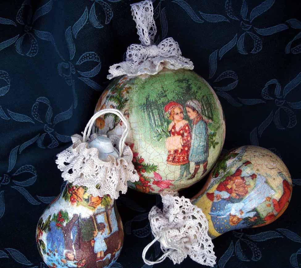 Las primeras bolas navideñas aparecieron en 1848 en Turingia, la ciudad de Lausch. Estos eran productos pesados de vidrio. El peso fue impartido por un revestimiento de plomo utilizado en el interior para crear un brillo. Las joyas multicolores eran muy caras, la gente común no podía pagarlas.