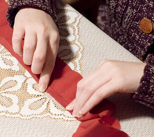 "Atrás la aguja". Los puntos son suaves, hermosos;