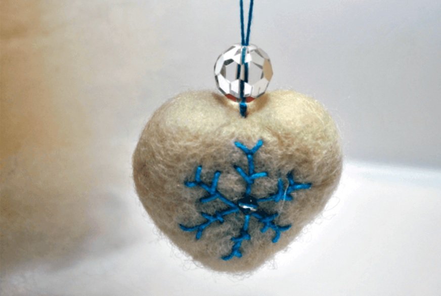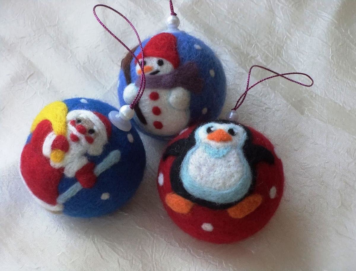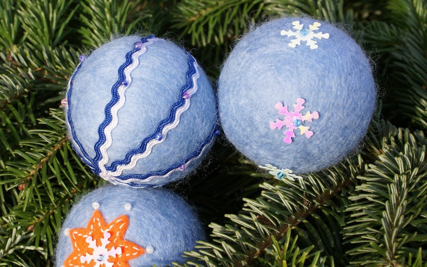 El fieltro de lana es una actividad simple y emocionante. Las figuras volumétricas son ligeras y suaves. Esto requerirá piezas de winterizer sintético, una madeja de hilo de lana. Para las mujeres principiantes con agujas, es mejor dar preferencia a formas simples de juguetes navideños.