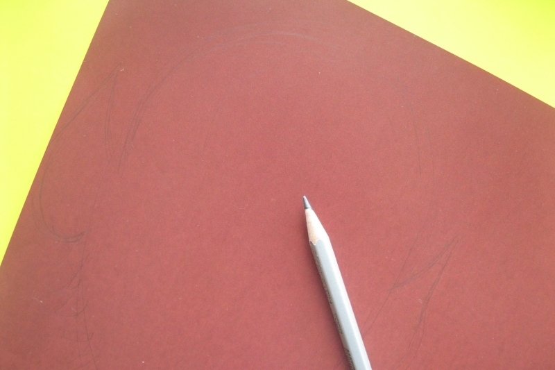 un contorno de una calabaza con una "cola" se dibuja en un cartón, se delinean las ranuras para los ojos, todo esto se debe cortar;